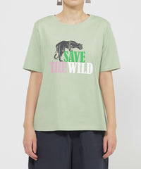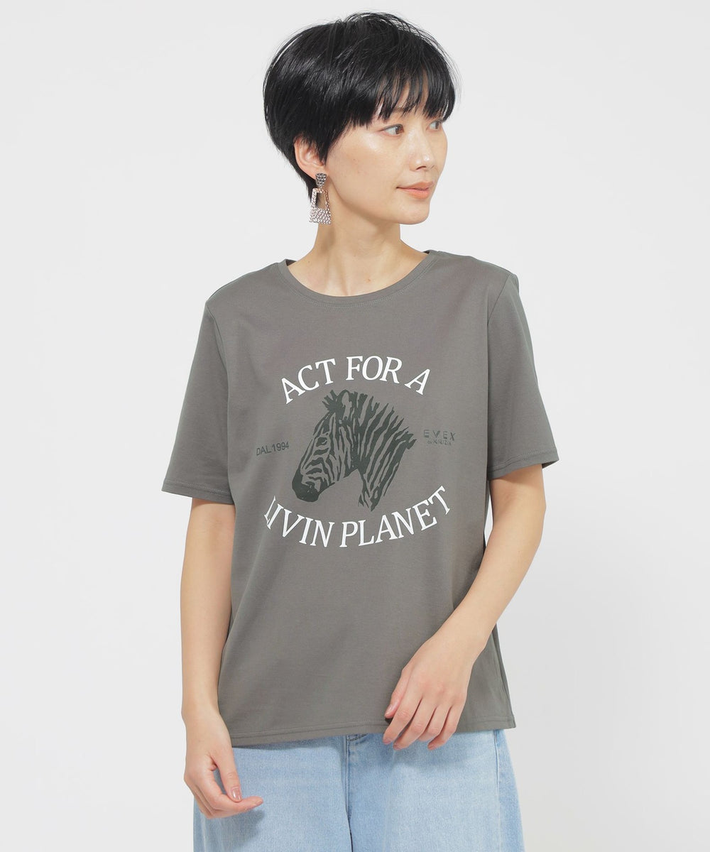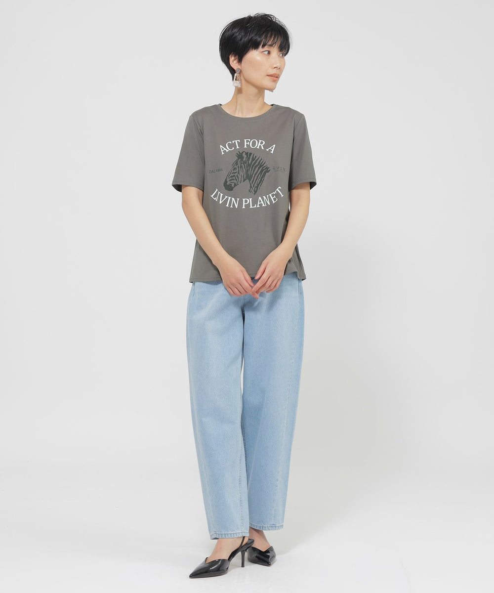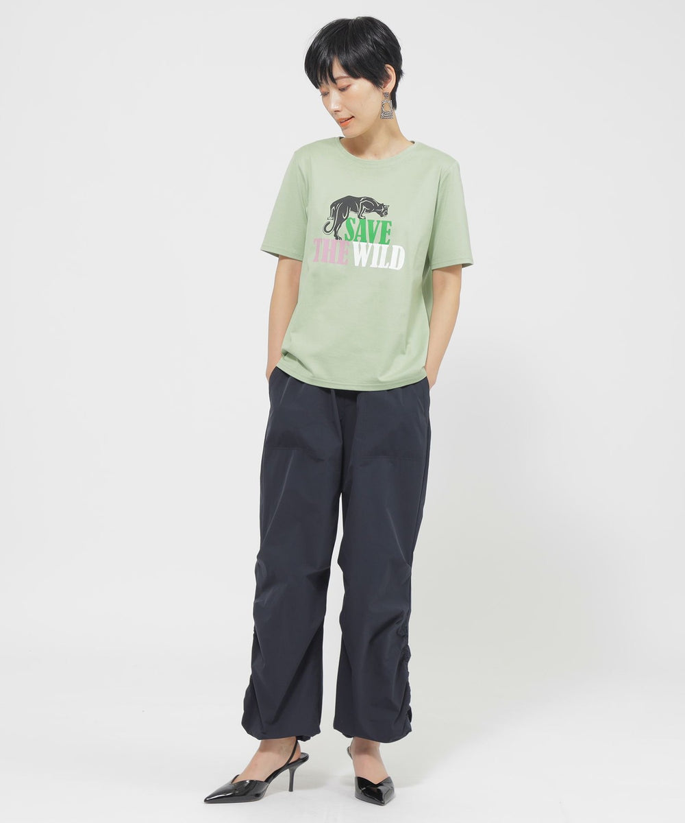 カラーによってデザインが選べるアニマルモチーフカットソー。エシカルな思いを込めたメッセージロゴ付きです。ホワイト(02)がパンサー、チャコール(08)がゼブラ、ピンク(12)がジラフ、グリーン(70)がブラックパンサーのモチーフです。ボディはコンパクトなシルエットで合わせやすく、ワイドボトムやテーパードパンツ、スカートにも相性ピッタリです。