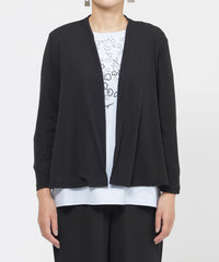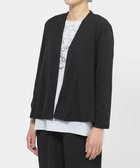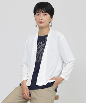 素材から開発した、夏に嬉しい機能がついた着流しショートカーディガンです。後ろのヘムラインに向かってレングスが長くなるデザインで、きれいにドレープが出るAラインシルエットが魅力です。さらりとした肌触りの良い素材で、汗ばむ時季も涼しく快適に過ごせます。抗菌・消臭テープ付き。