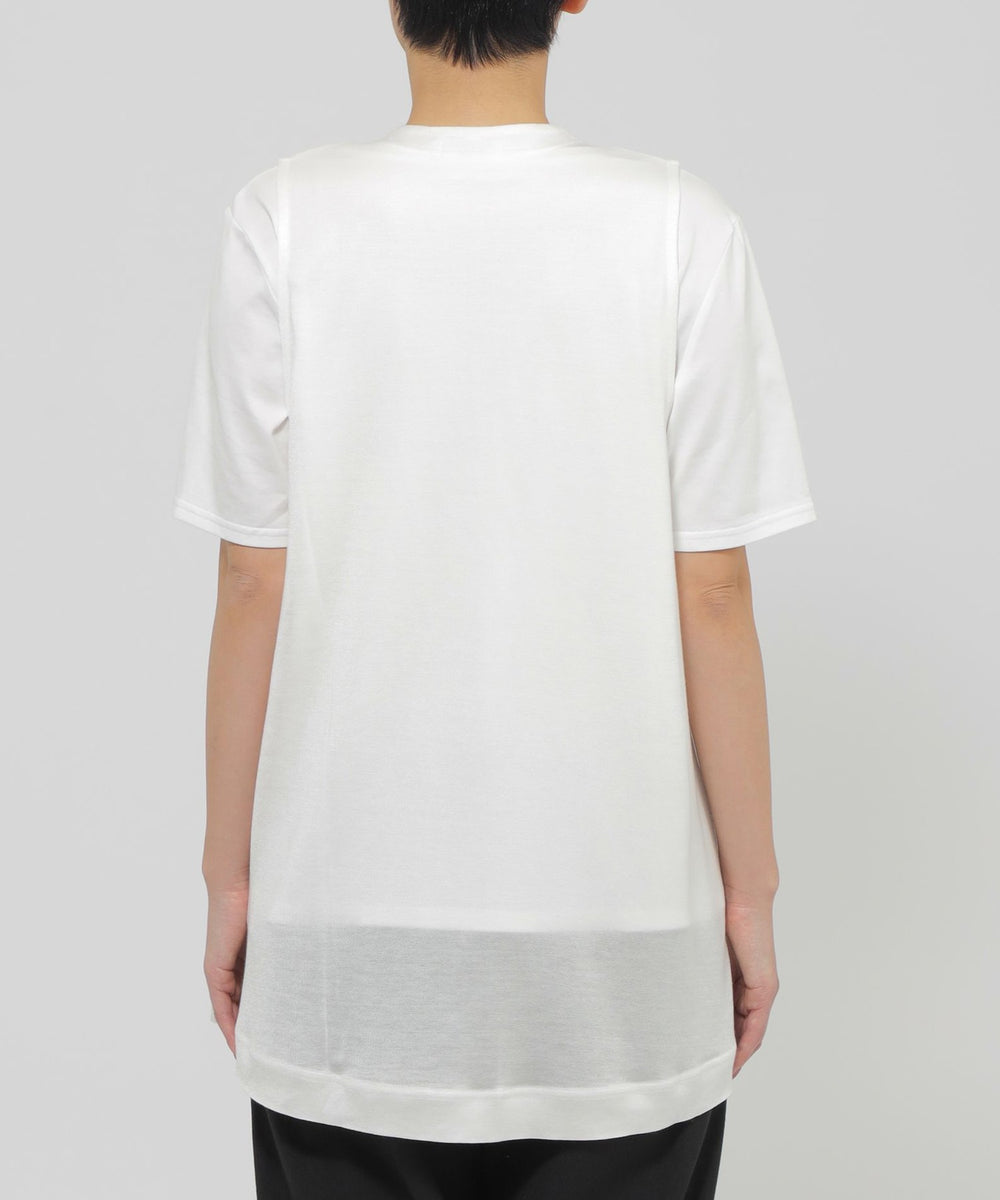 テンセル(TM)ブランドのリヨセル繊維を編み立てたジャージー素材を使用しました。ソフトな手触りとなめらかなドレープ性でデザインを際立たせます。接触冷感機能付きです。テンセル(TM) リヨセル繊維は認証済みの管理された供給元で収穫された木材及びパルプを原料とするサステナブルな素材でもあります。TENCEL(TM)及びテンセル(TM)はLenzing AGの商標です。