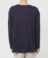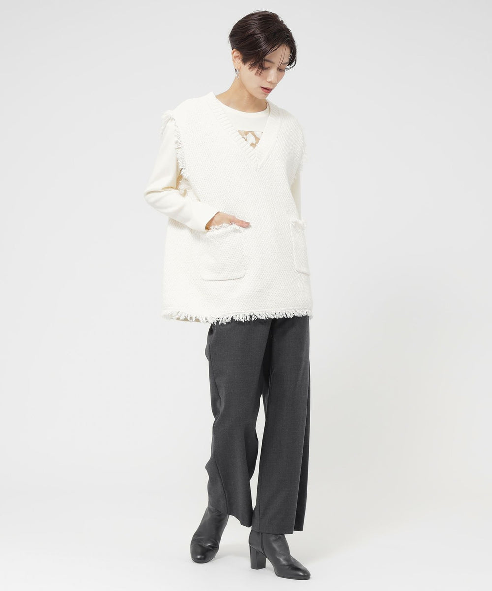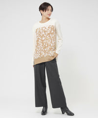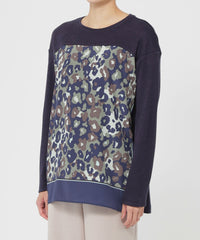 ニットのようなバルキージャージにスカーフプリントをはめ込んだ、ドッキングプルオーバー。