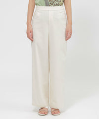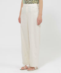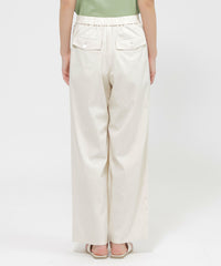 シンプルなデザインで、美しいシルエットを際立たせたプルオンタイプのワイドストレートパンツです。ワイドすぎない絶妙なシルエットで、足長効果抜群のパンツ。フルレングスと程よいゆとり感がカジュアル過ぎないクリーンな印象に。ウエストの後部分のみゴムを配し、快適なはき心地とスッキリとした見た目を両立させています。トップスや着る場面を選ばないこの春夏のマストアイテムです。