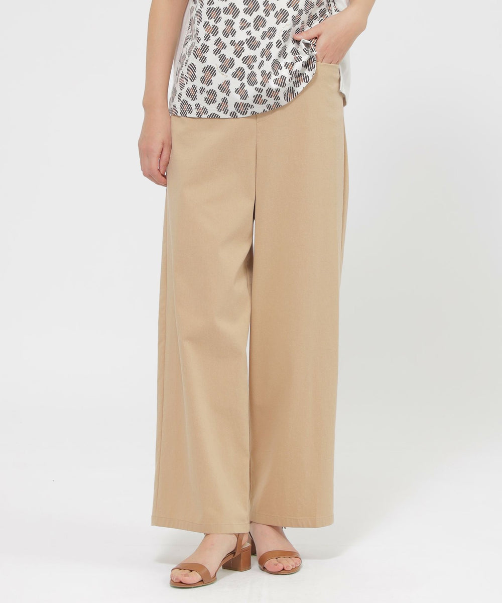 【カタログ掲載品】【ウォッシャブル】コットン麻ブレンドストレッチワイドストレートパンツ