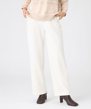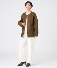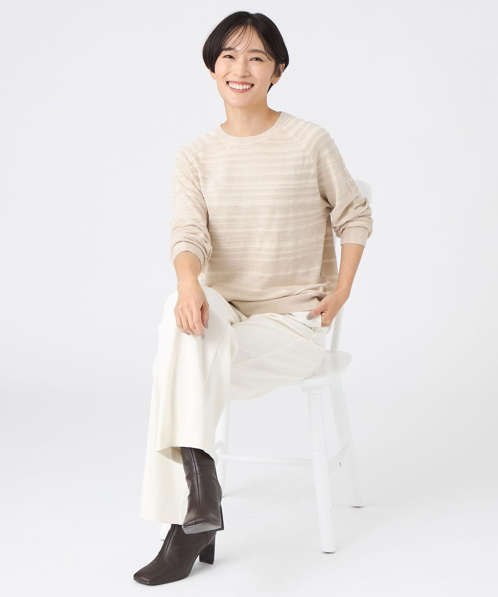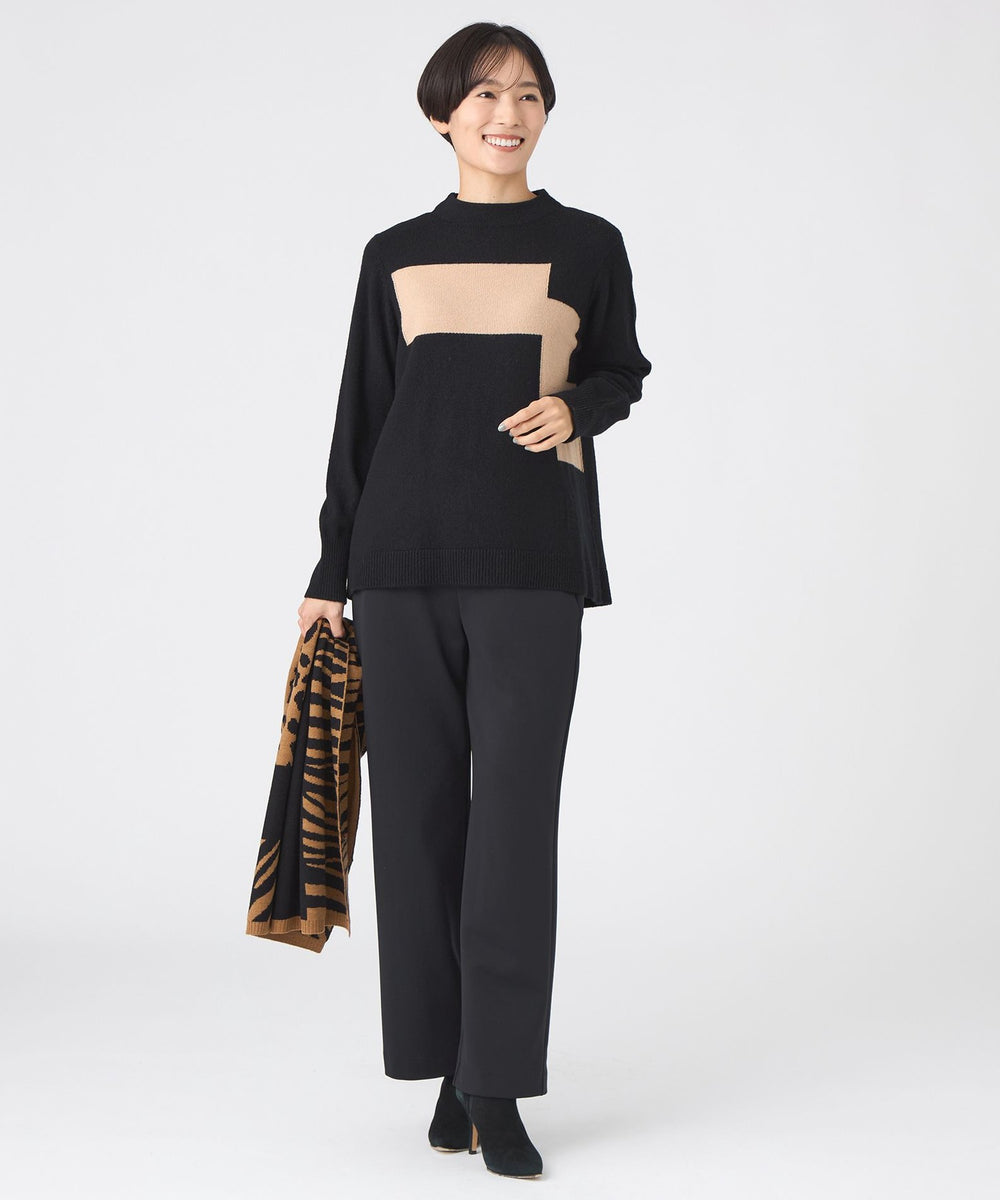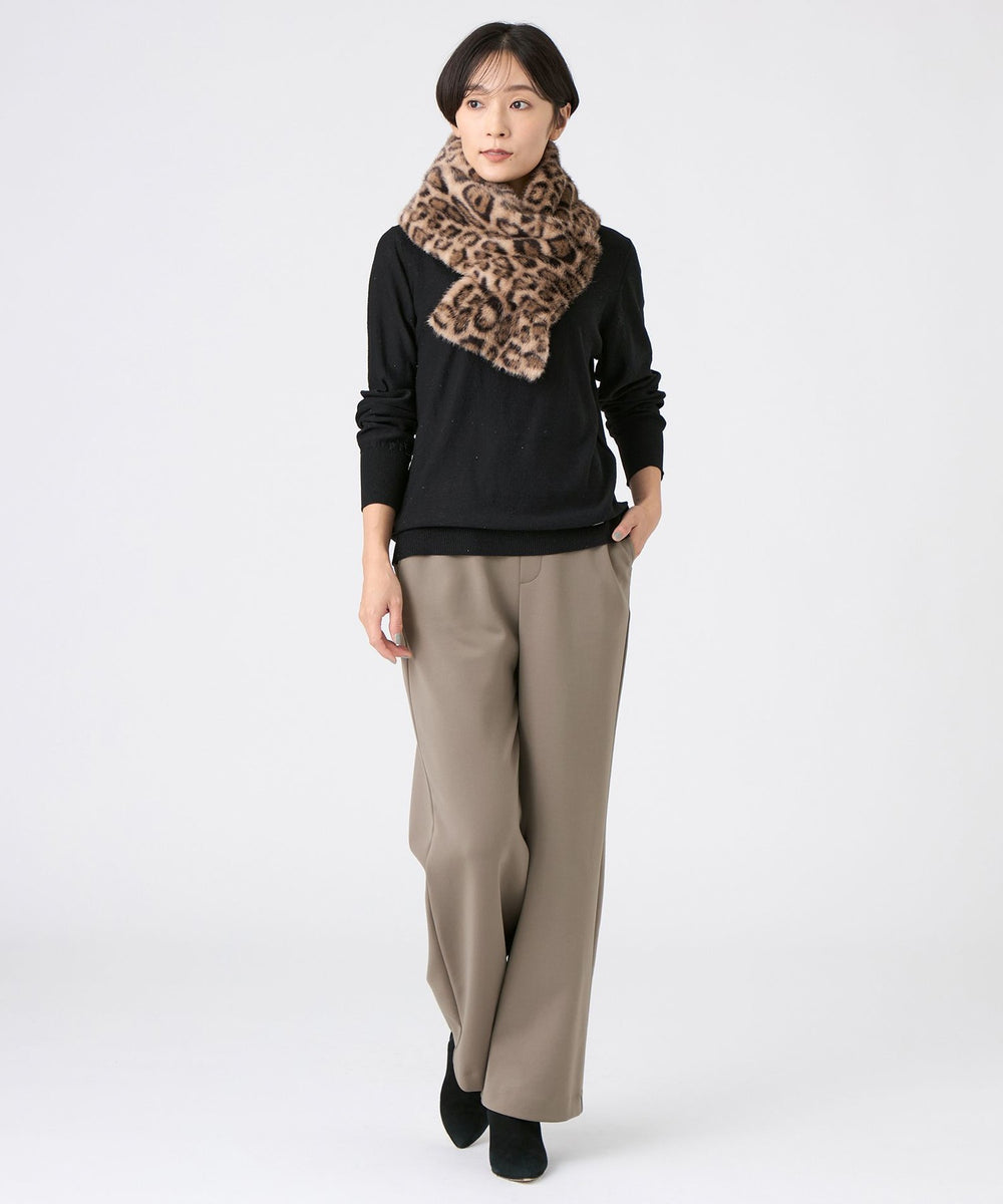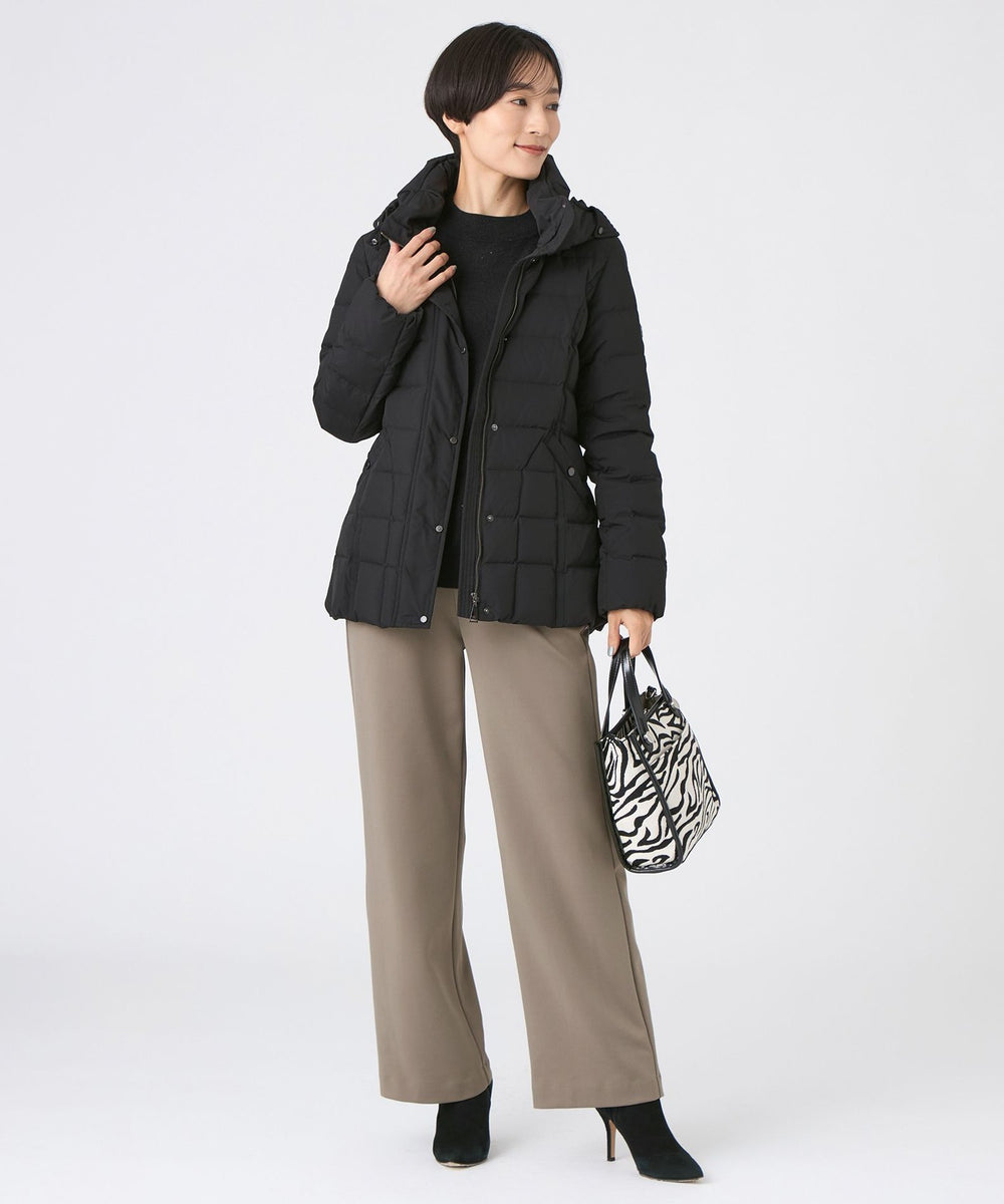 膝から裾まで真っすぐ落ちるストレートシルエット、一般的なワイドボトムよりも4-5cm程細いややワイドな裾幅のNEWシルエット。ワイドのニュアンス感や体型カバー力、ストレートのスッキリ感や合わせやすさをいいところ取りした万能ボトムです。ちょうどいいバランスがトップスの着丈を選ばず、着回しのきく優秀アイテム。素材のストレッチ性に加え、ウエストはゴム仕様なのでよりラクチンな穿き着心地です。