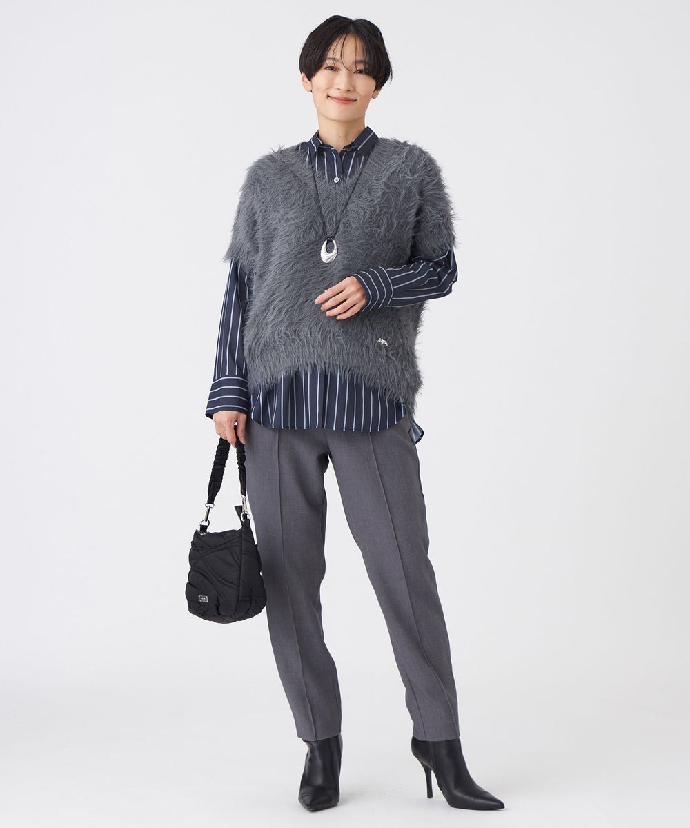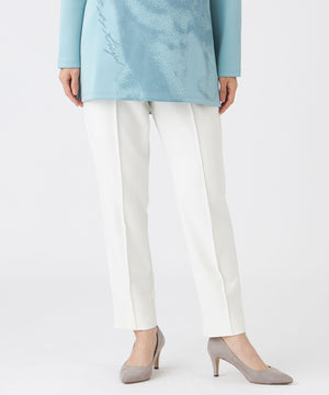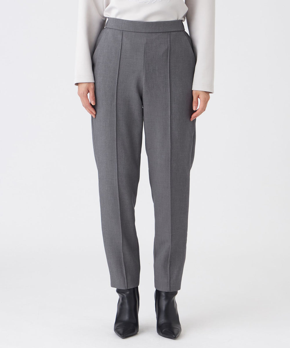 細すぎない、ちょうどいいシルエットが履きやすいテーパードパンツ。センターのピンタックがスッキリきれいなシルエットの秘訣です。