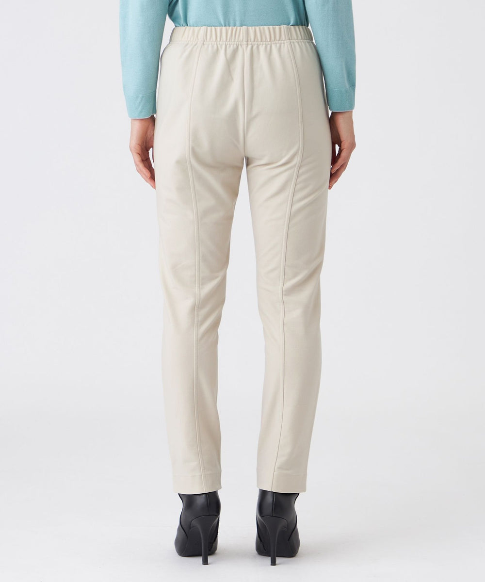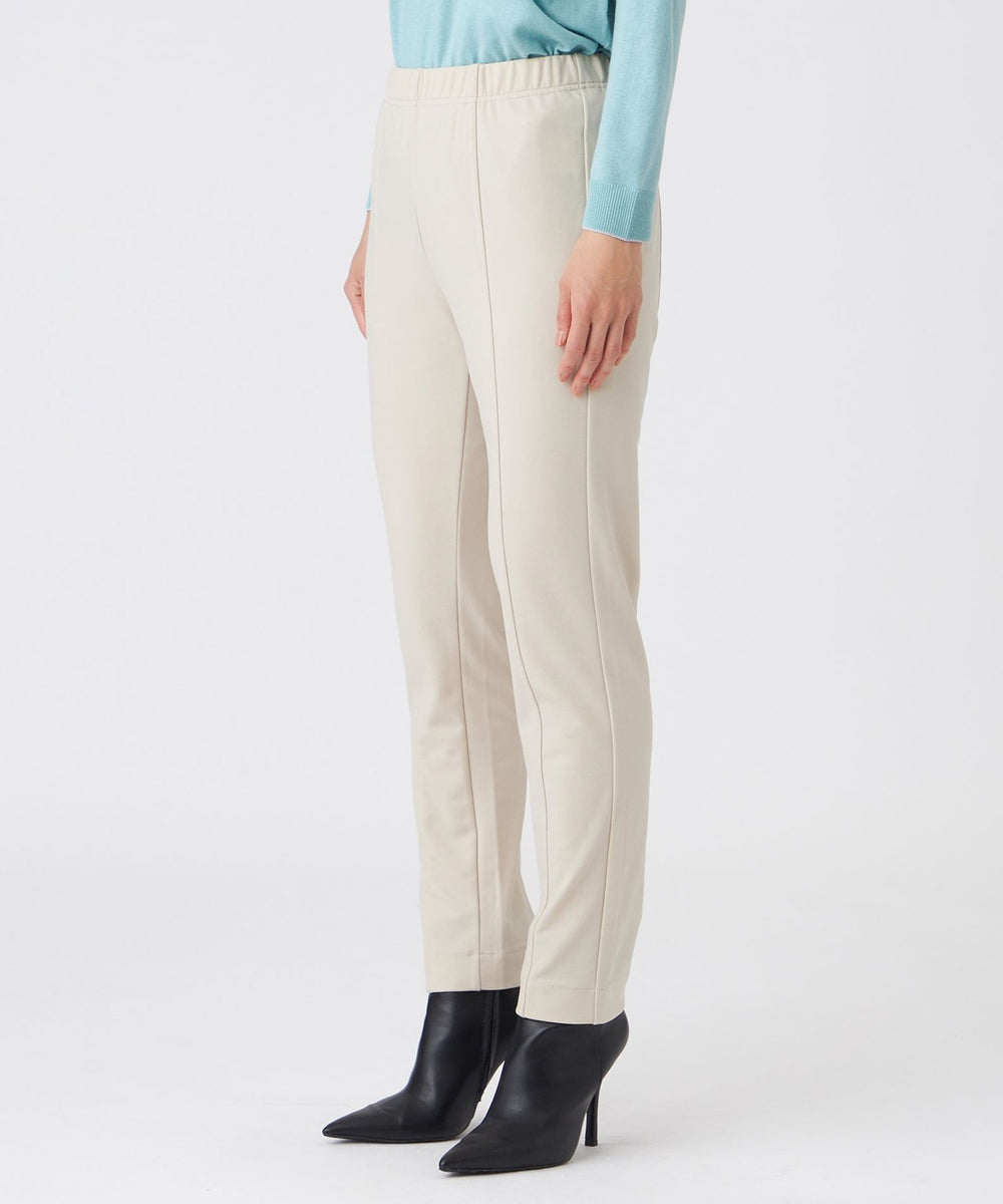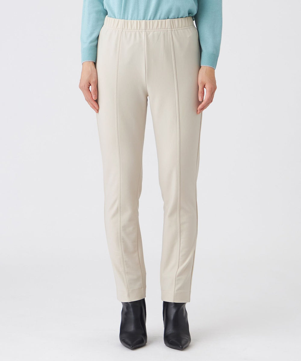 ハイテンションの裏起毛素材を採用。縦横に伸びるストレッチで快適な履き心地です。パウダリーな表情も魅力。