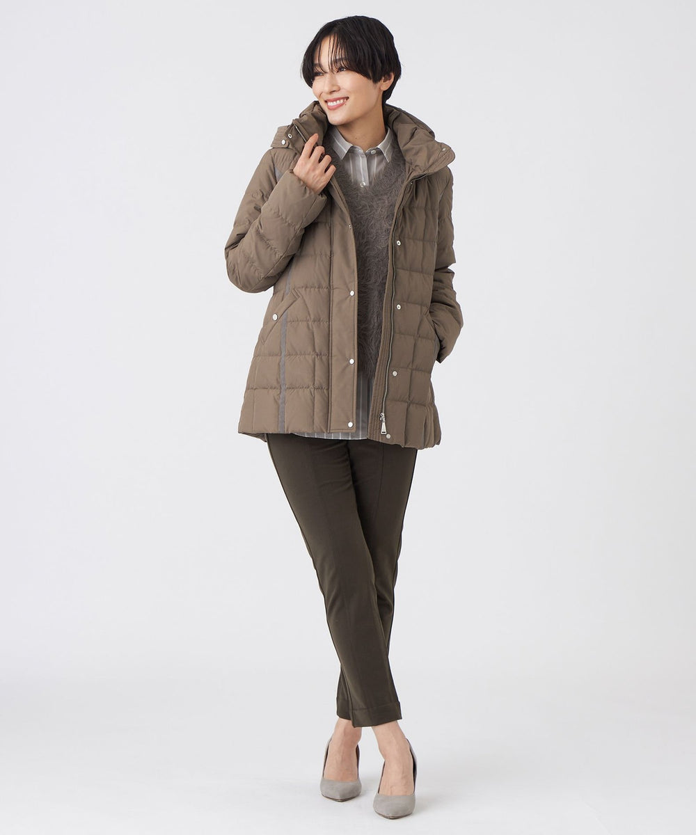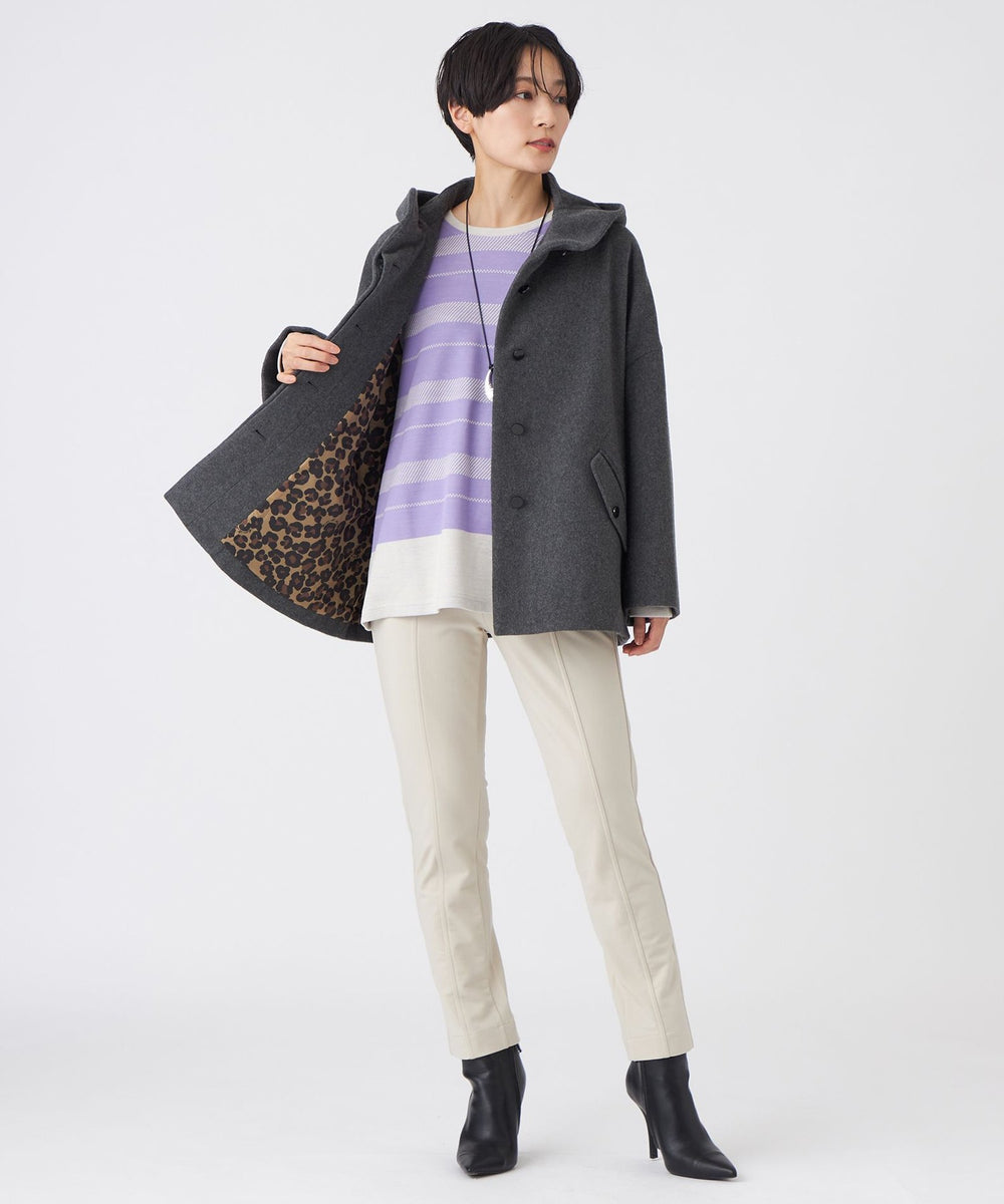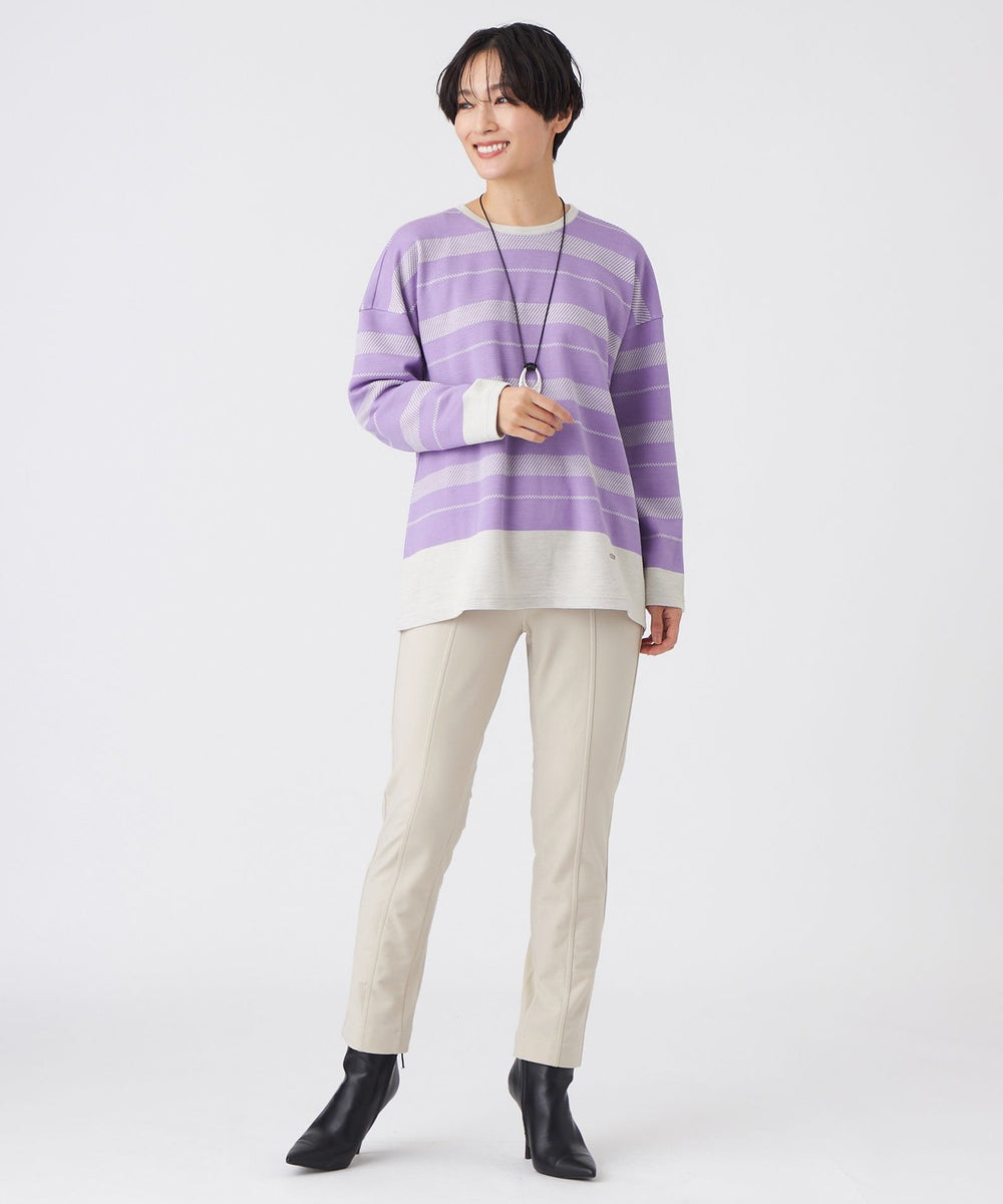 ハイテンションの裏起毛素材を採用。縦横に伸びるストレッチで快適な履き心地です。パウダリーな表情も魅力。