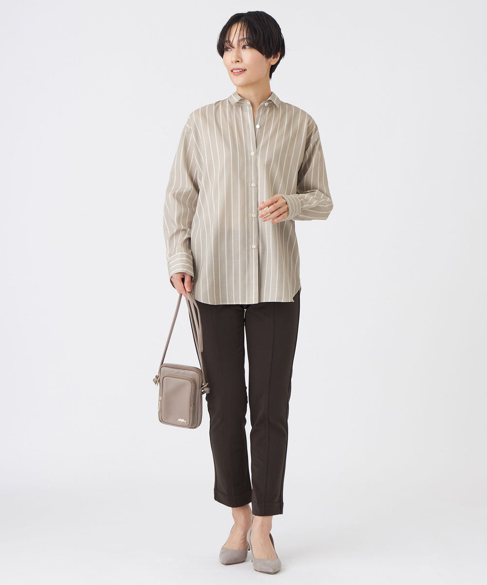 適度なフィット感、センターシームでスッキリと履きこなせる定番人気のハイテンションパンツ。総ゴム仕様のウエストと、素材のストレッチ性がストレスフリーな履き心地を叶えます。光沢感があり、カジュアルすぎない見え感が汎用性の高い万能ボトム。