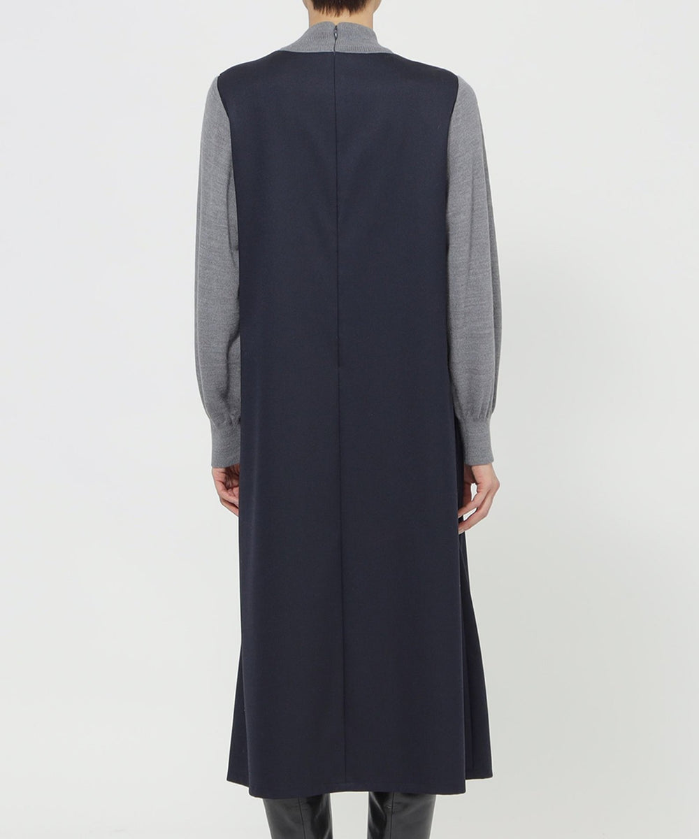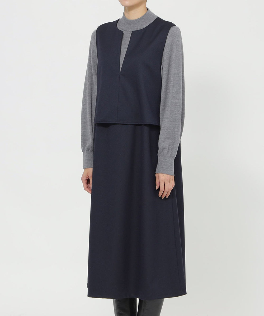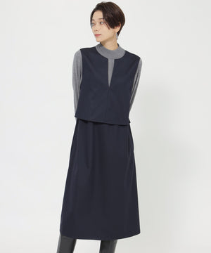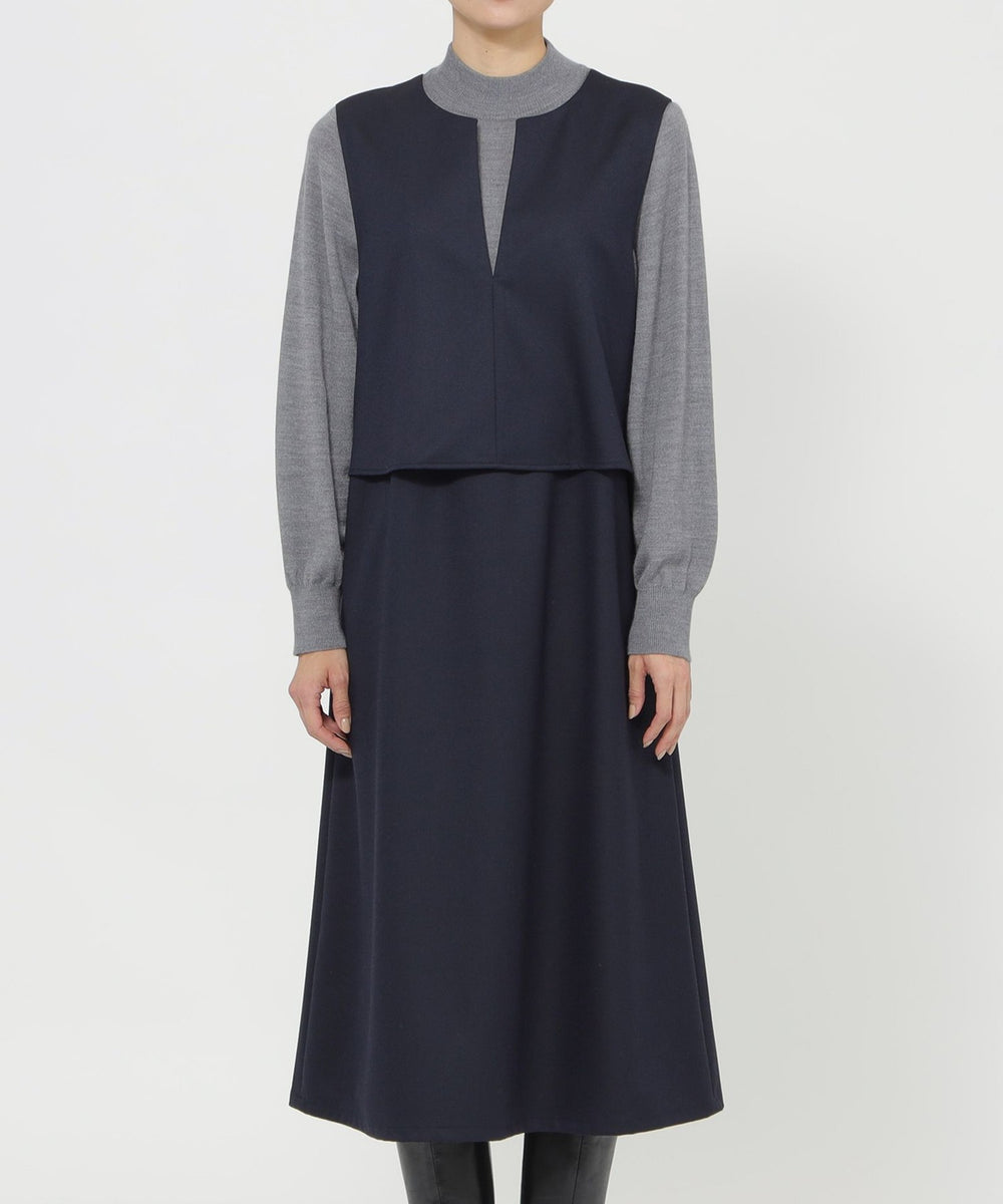 1枚でレイヤードしたかのような着こなしが楽しめるデザインワンピース。