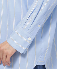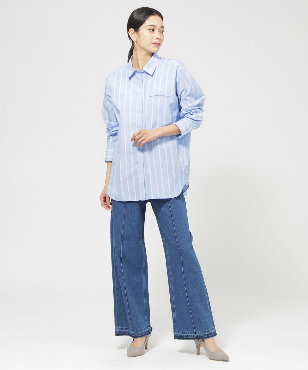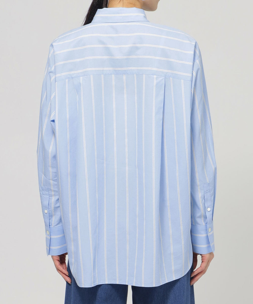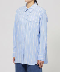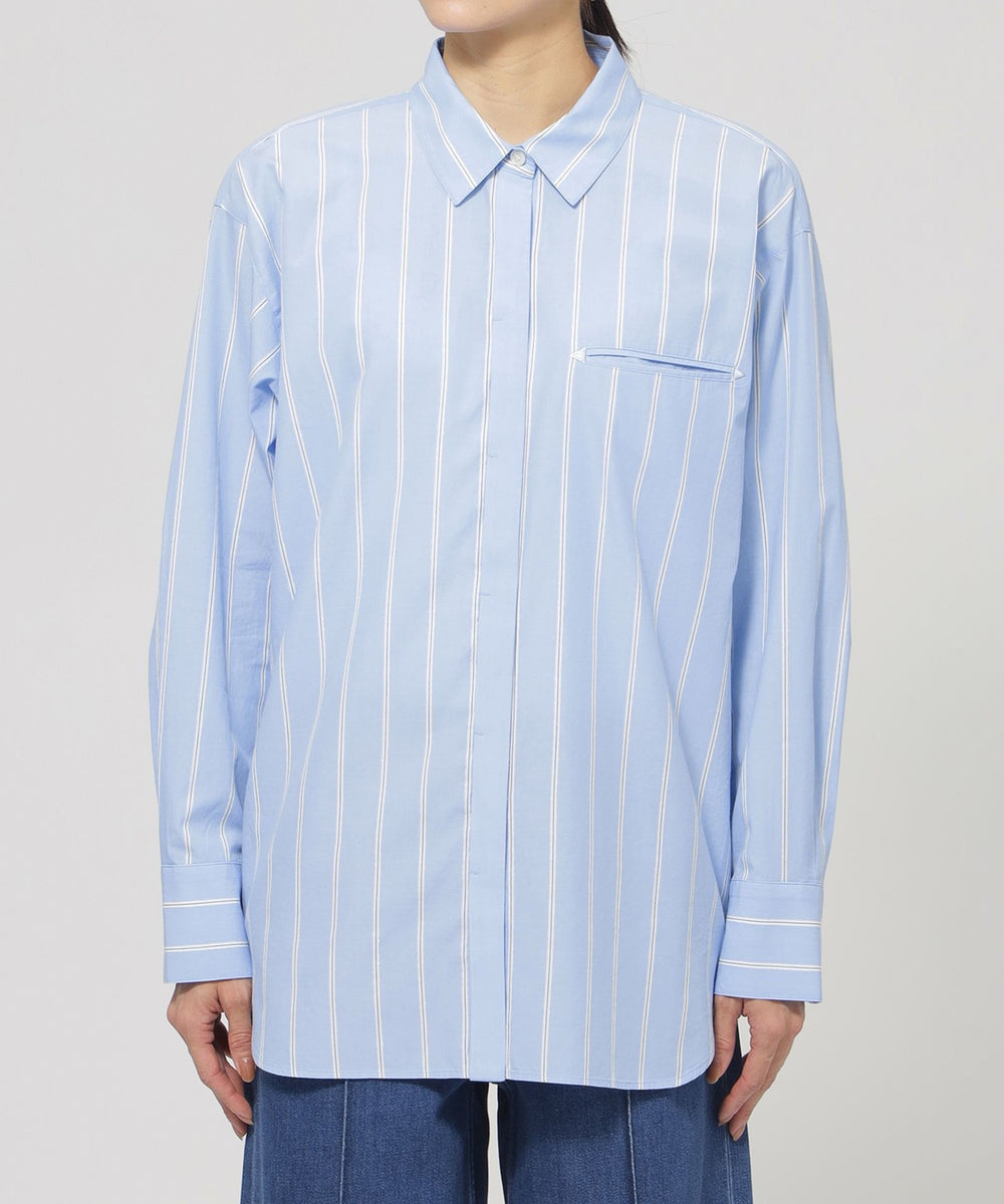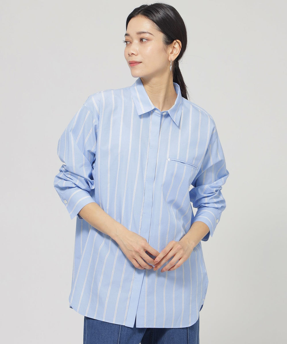 色を効かせた爽やかなストライプパターンが印象的なシャツシリーズ。カラーストライプがコーデに映えるベーシックなシャツ。フロントはシンプルで、バックヨークに入ったタックが抜け感をアップ。胸元のポケットに施した三角の刺繍がポイントです。同素材の刺繍シャツ(U7M05527)、ジャージーコンビプルオーバー(U7P06527)をご用意しています。