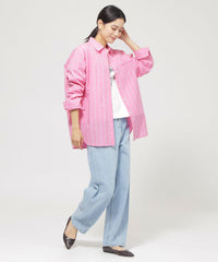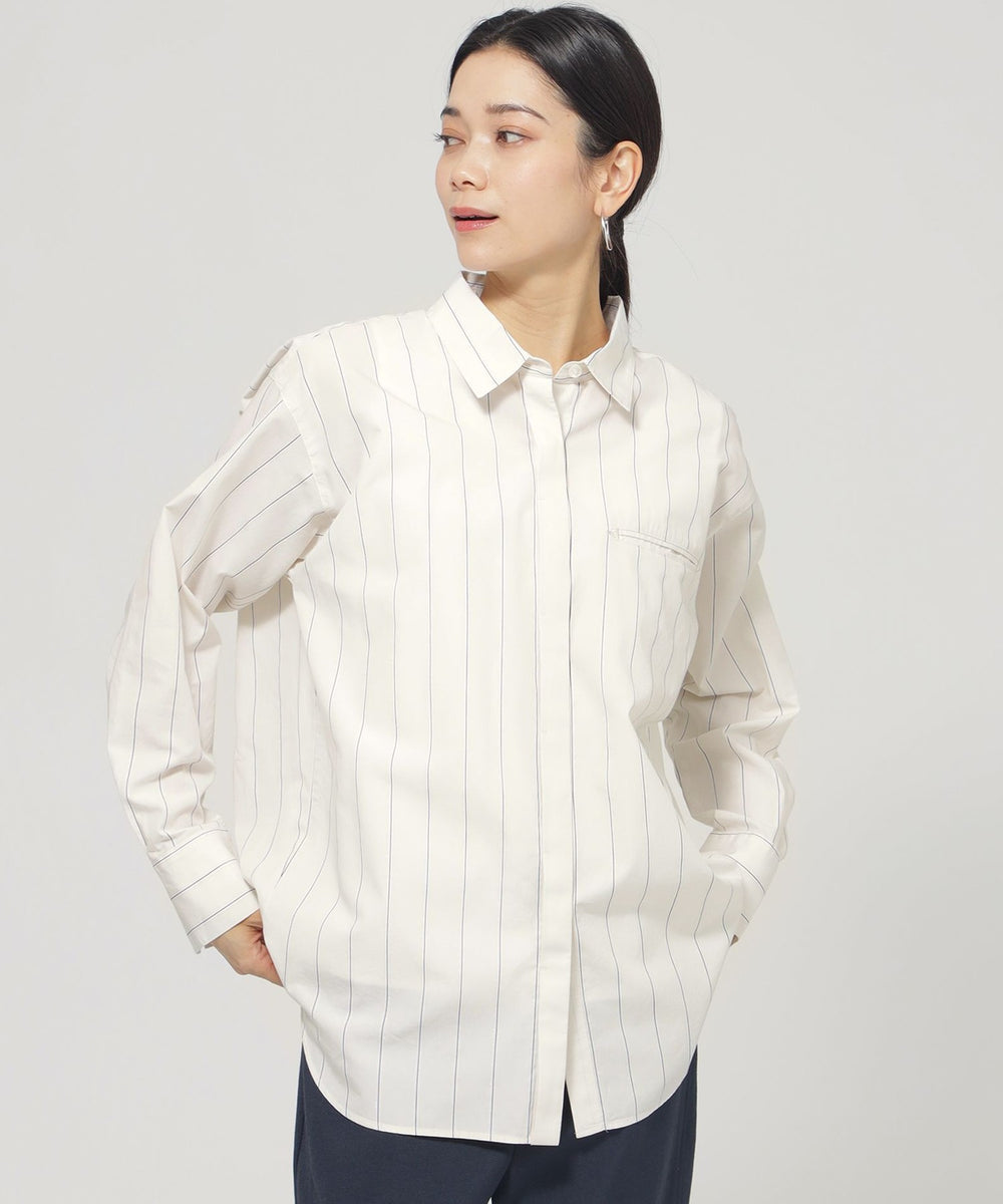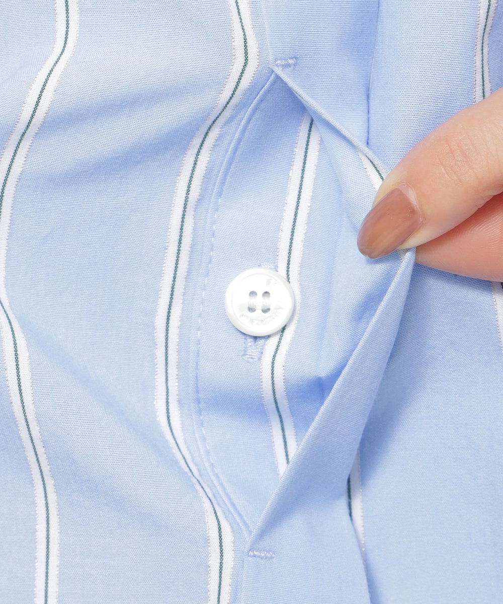 【L】【ウォッシャブル】ラメストライプシャツ