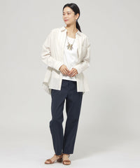 植物由来の再生繊維と綿を掛け合わせたオリジナルストライプ素材です。洗いをかけたラフな表情が魅力。細巾と太巾の2種類のストライプ柄です。春を感じさせる鮮やかなカラーで、コーディネートを華やかにみせます。