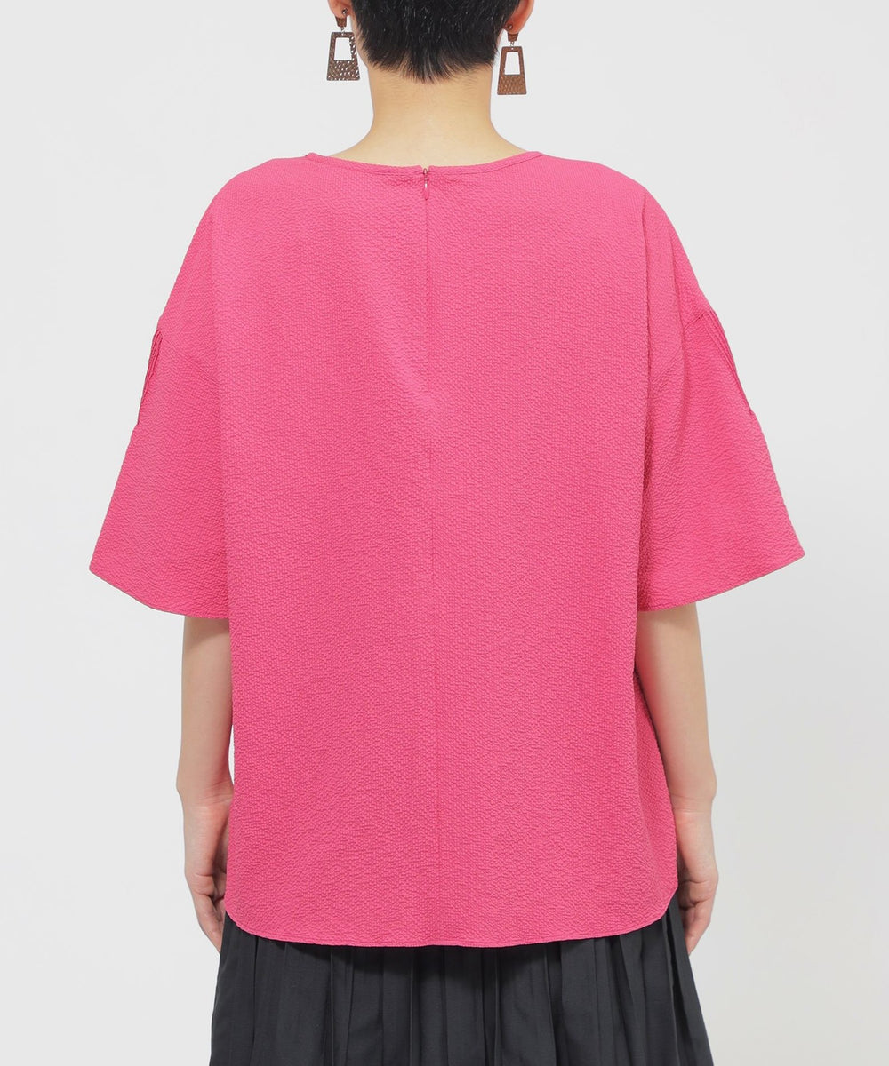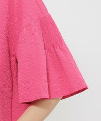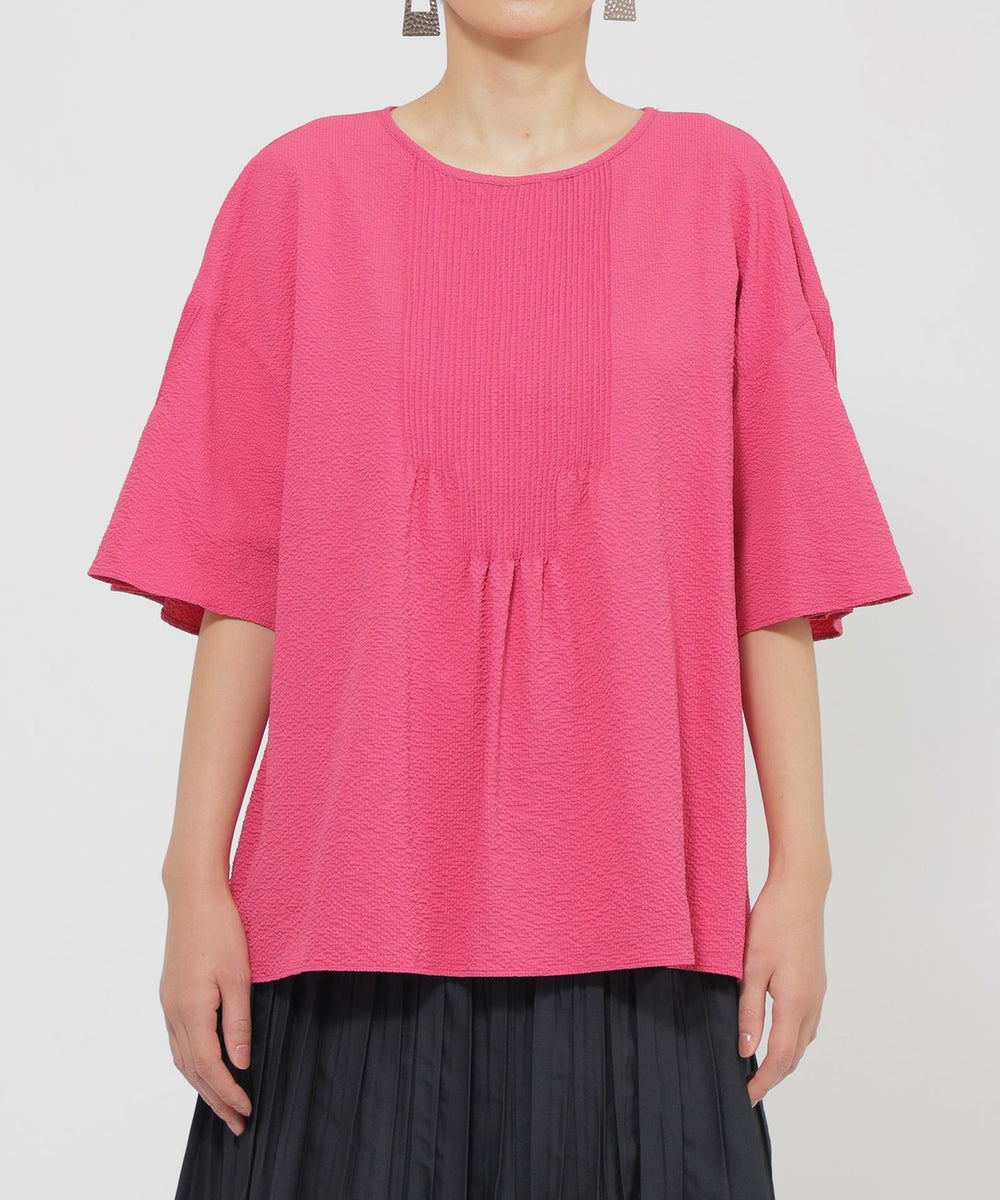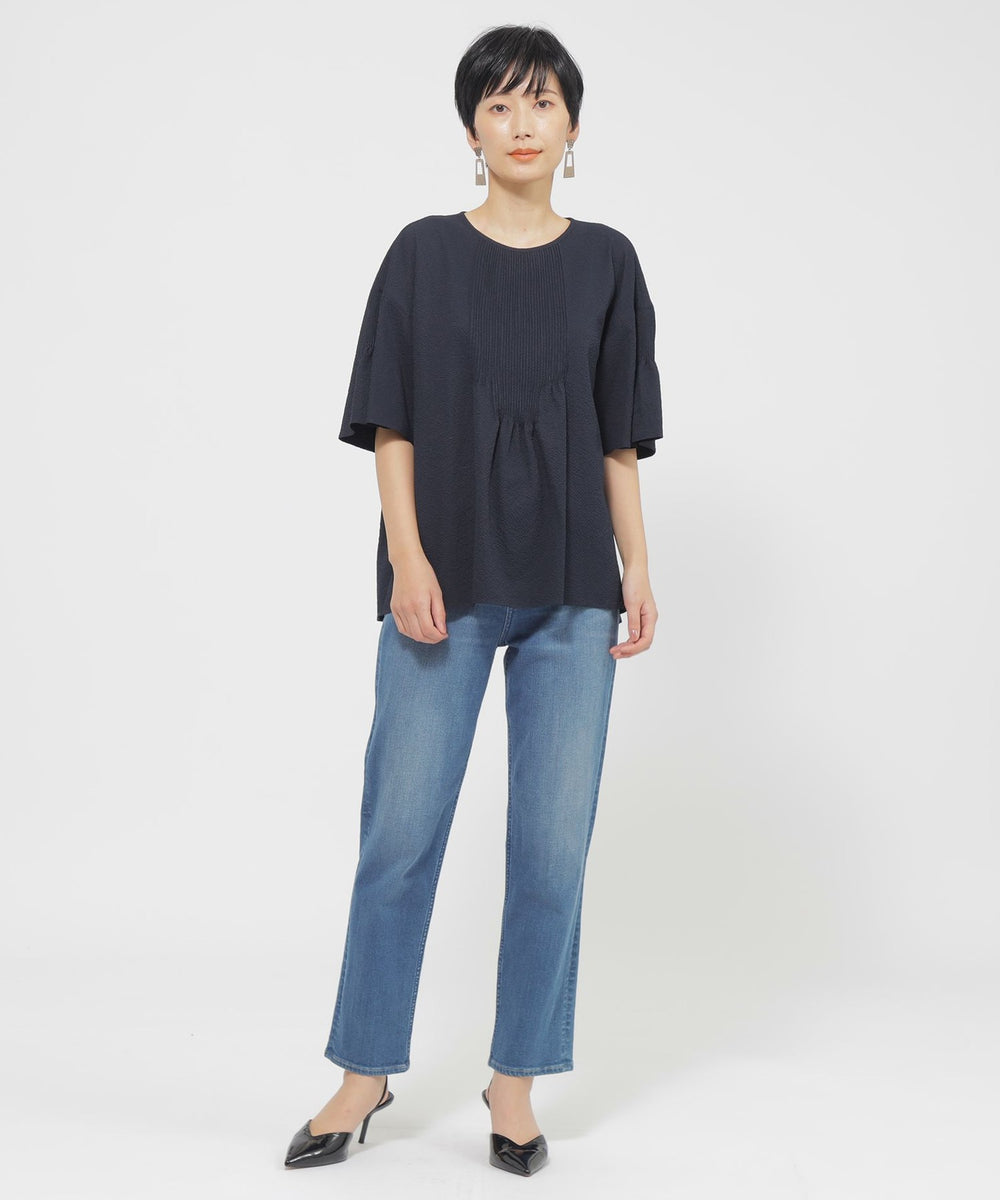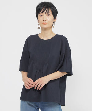 ふんわりとしたフレアスリーブと前身頃と袖山にピンタックを施した、1枚で決まるデザインブラウスです。二の腕をしっかりカバー出来るのもポイントで、ゆったりとしたシルエットですが腰回りはすっきり見えるように仕上げました。