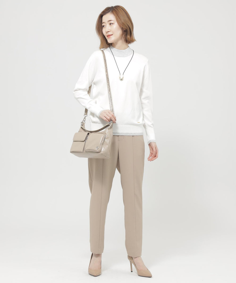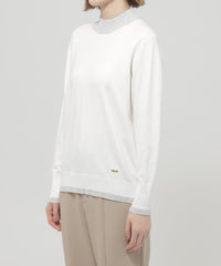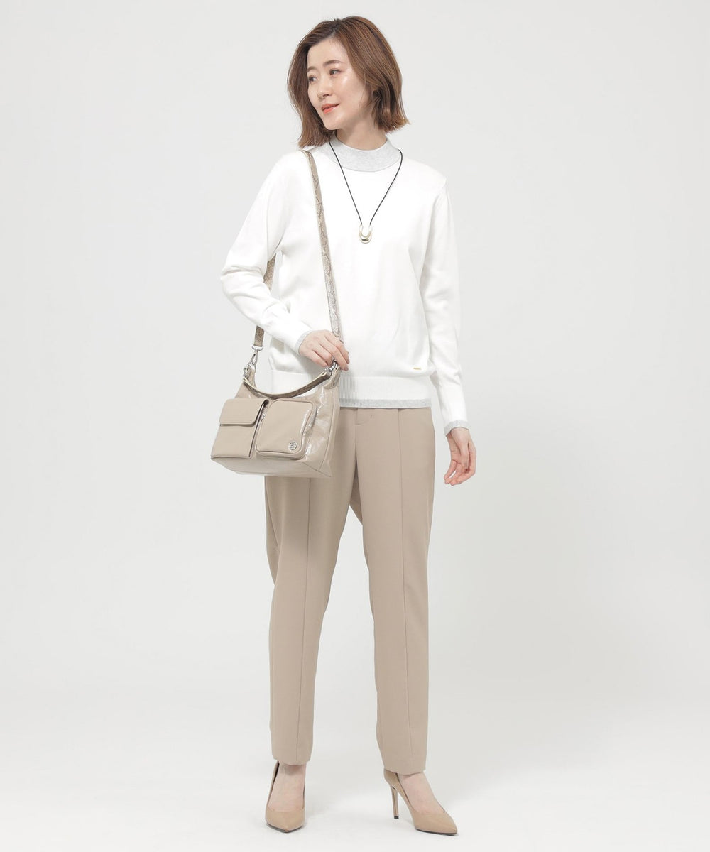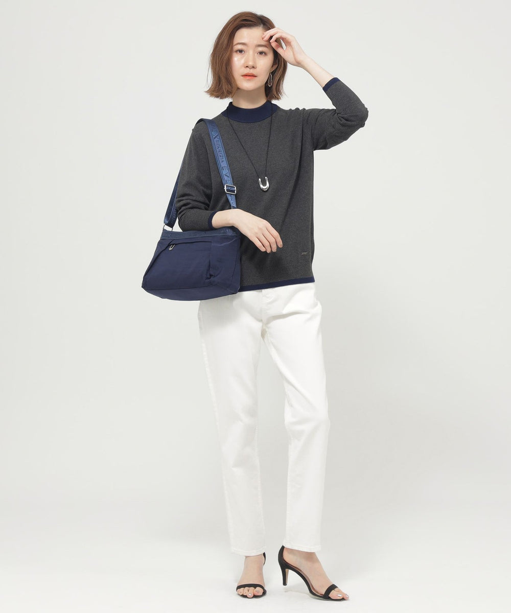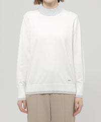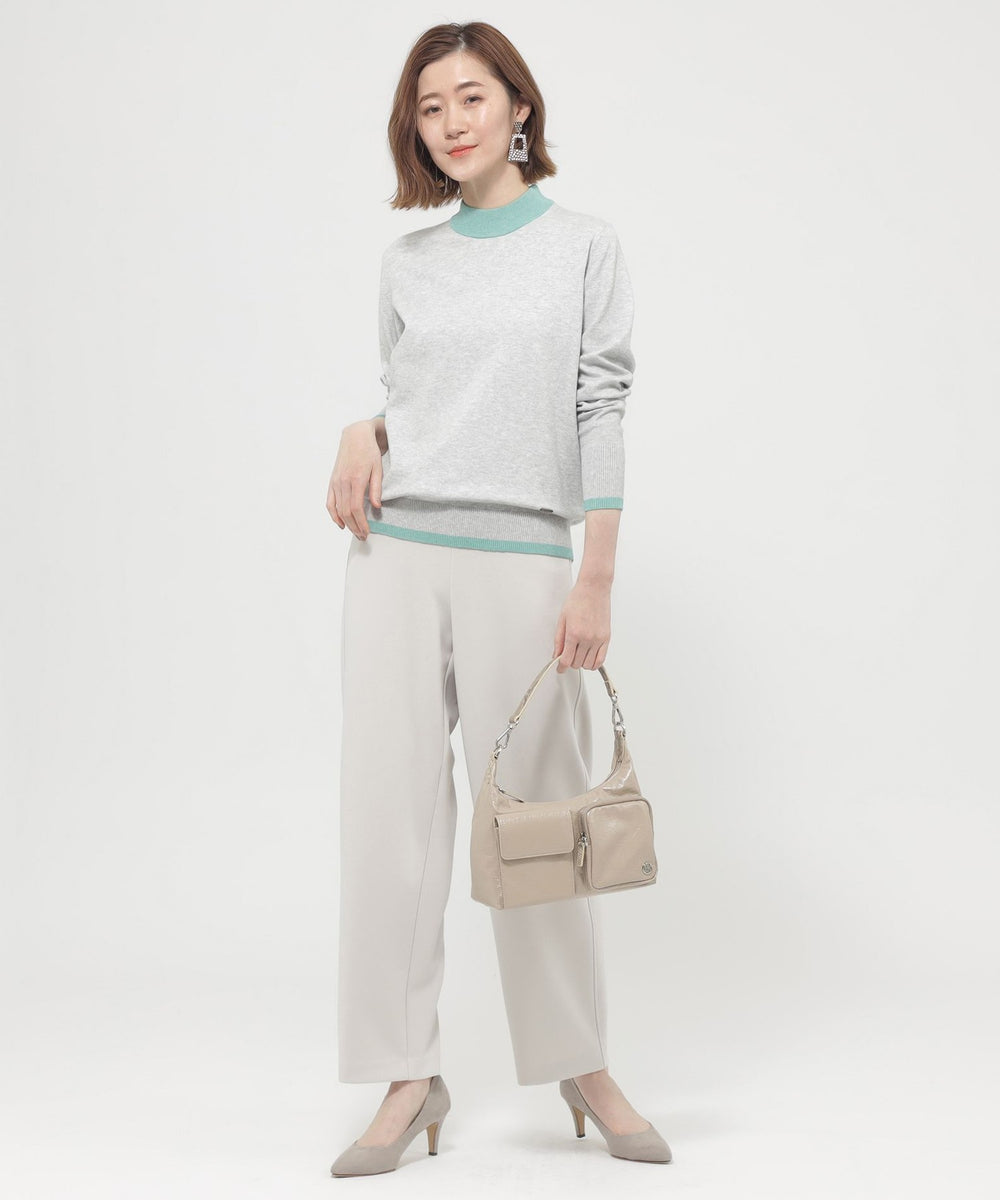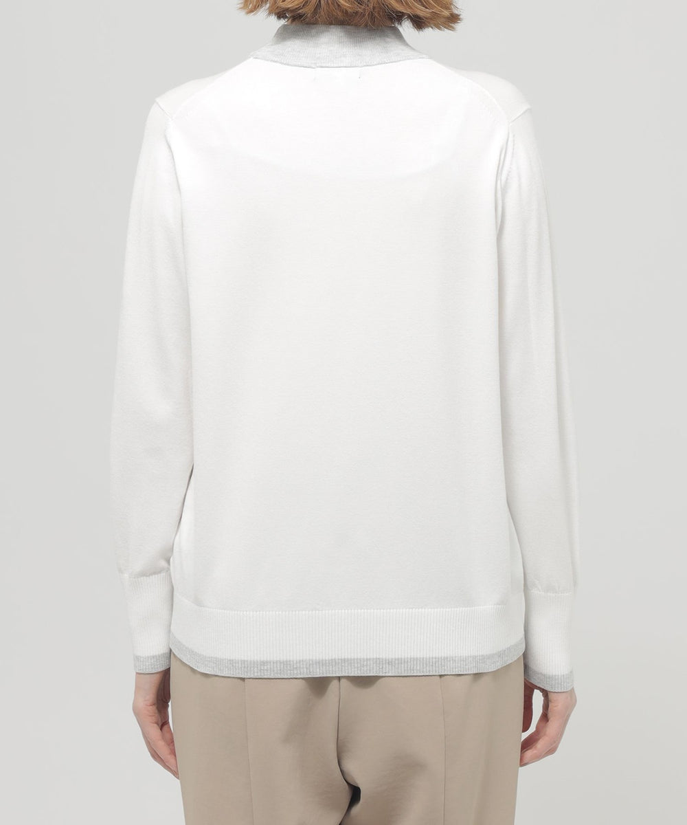 衿と裾、袖口のポイントカラー使いが、おしゃれで主役級の一枚です。ピタッとしすぎず一枚でも着やすいサイズ感です。インナーとして着てもネックの配色がアクセントに。プレーンなデザインなのでトップス使いもインナー使いもできる優秀アイテムで幅広い場面で活躍してくれます。