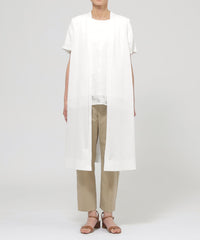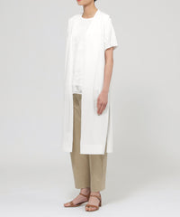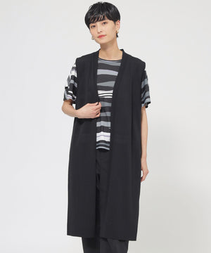 レイヤードスタイルに様々な着こなしを楽しめるロングジレです。サイドに深く開けたスリットがポイントで、ラフな抜け感を出しています。いつものコーディネートにプラスするだけでこなれ感のでるアイテムです。