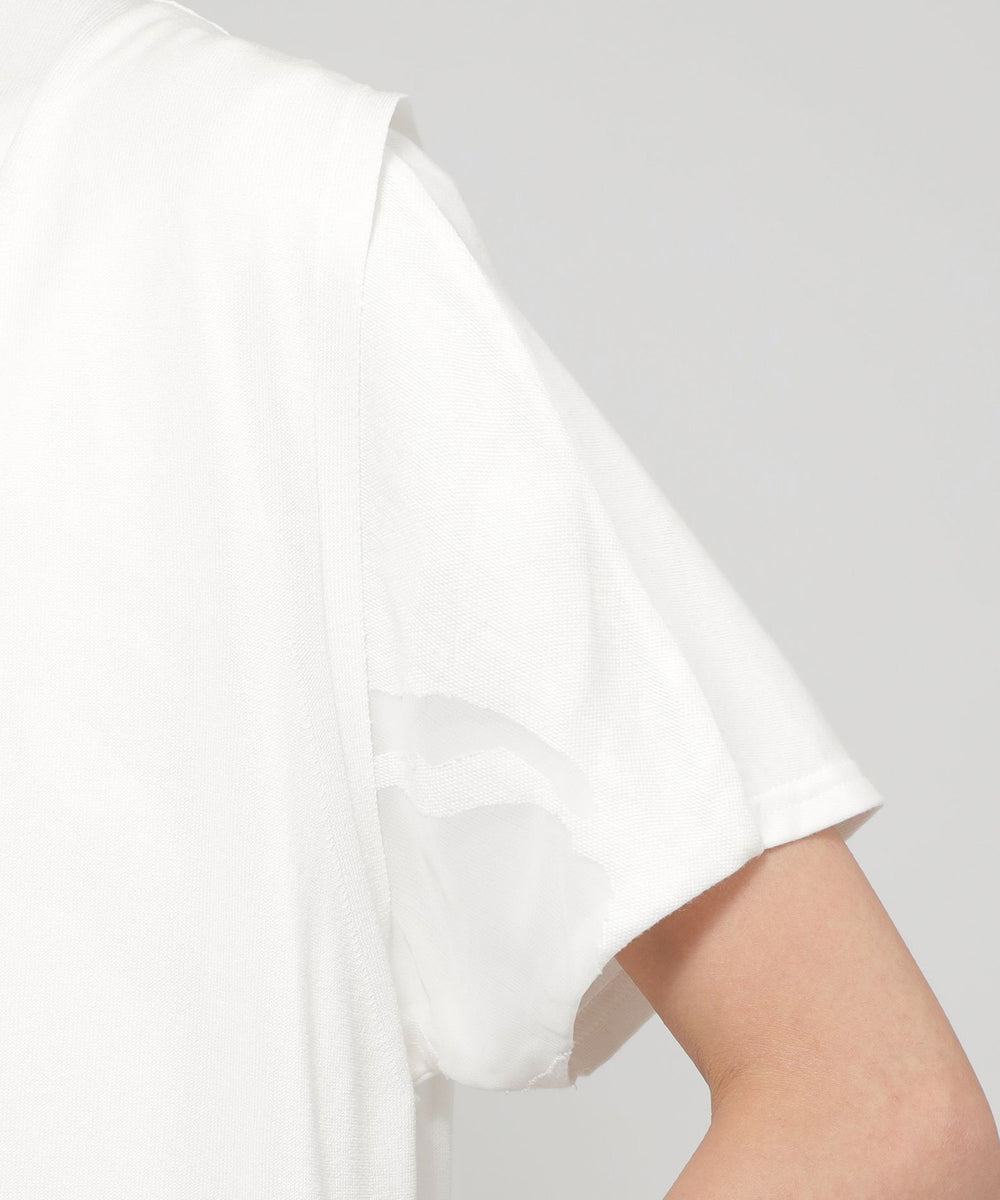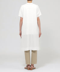 リネンのようなドライタッチを再現しながらも、ナチュラルなコットンとポリエステルを強撚させた糸で、サラッとしたテクスチャーに仕上げた素材です。