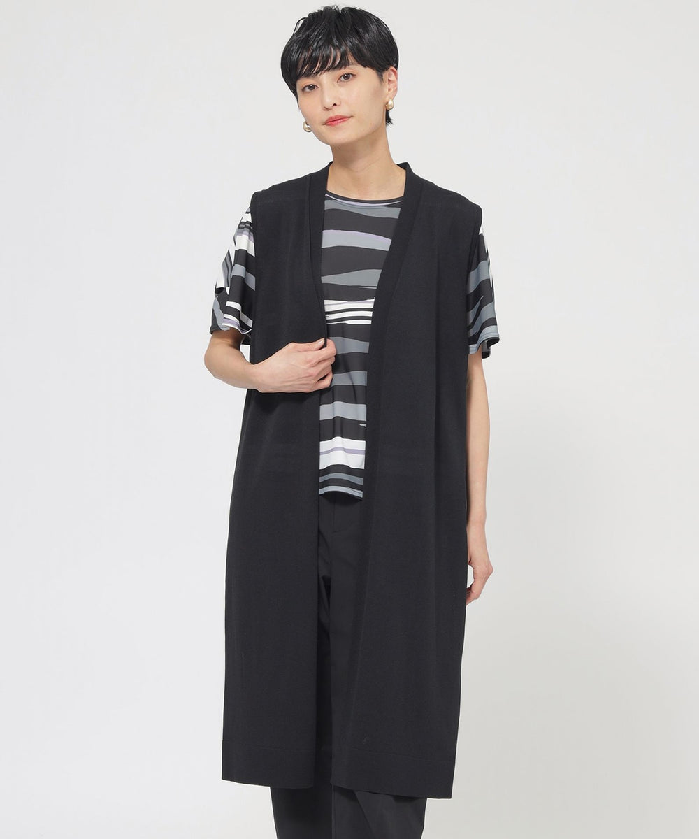 【L】【ウォッシャブル】ドライタッチコットンニットロングジレ