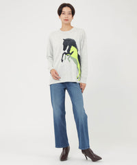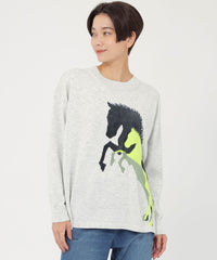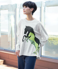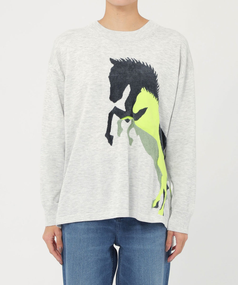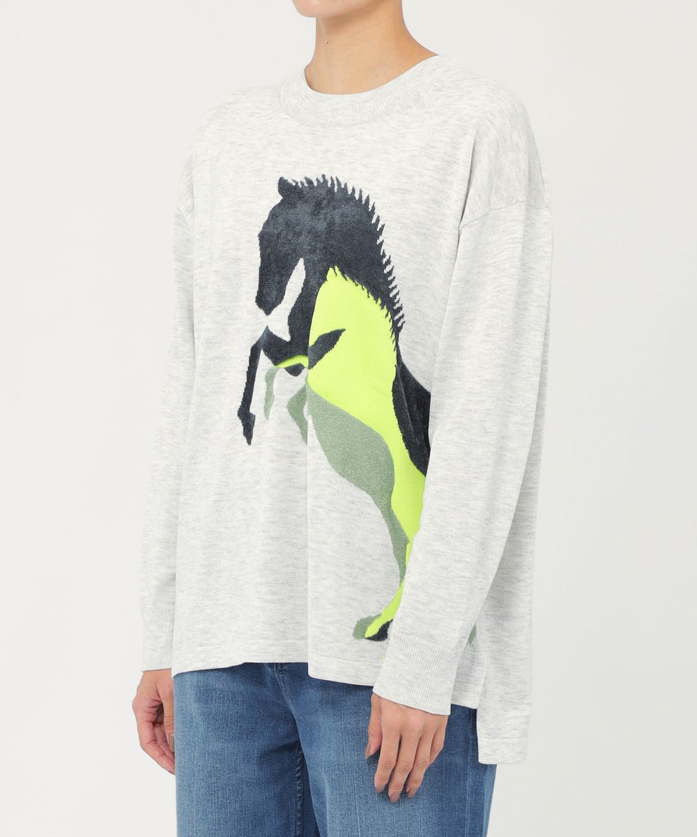 ホースのシルエットをインターシャで大胆にデザインしたニットプルオーバー。
