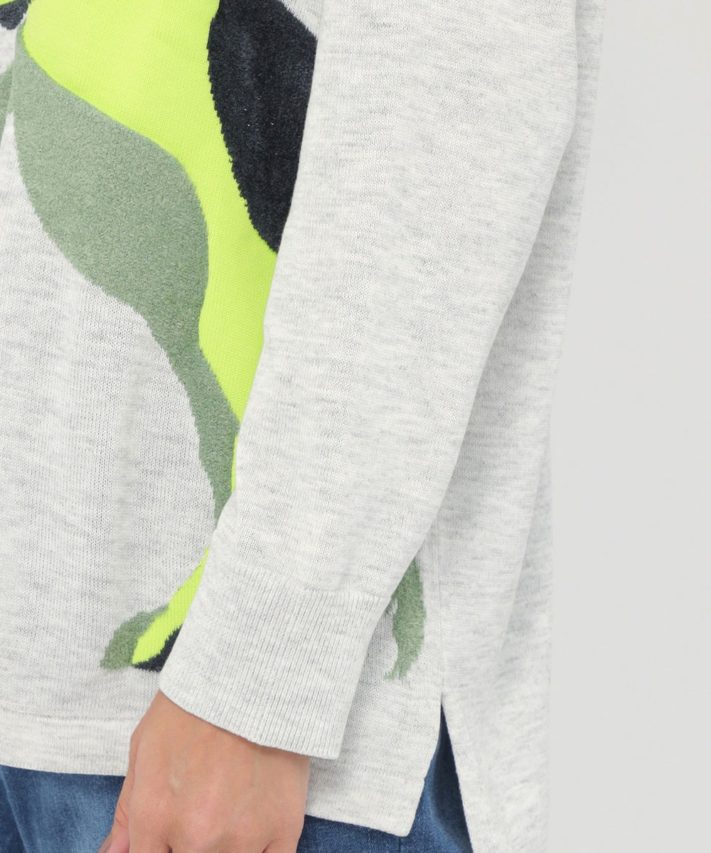 【L】【ウォッシャブル】シャドーホースインターシャニット