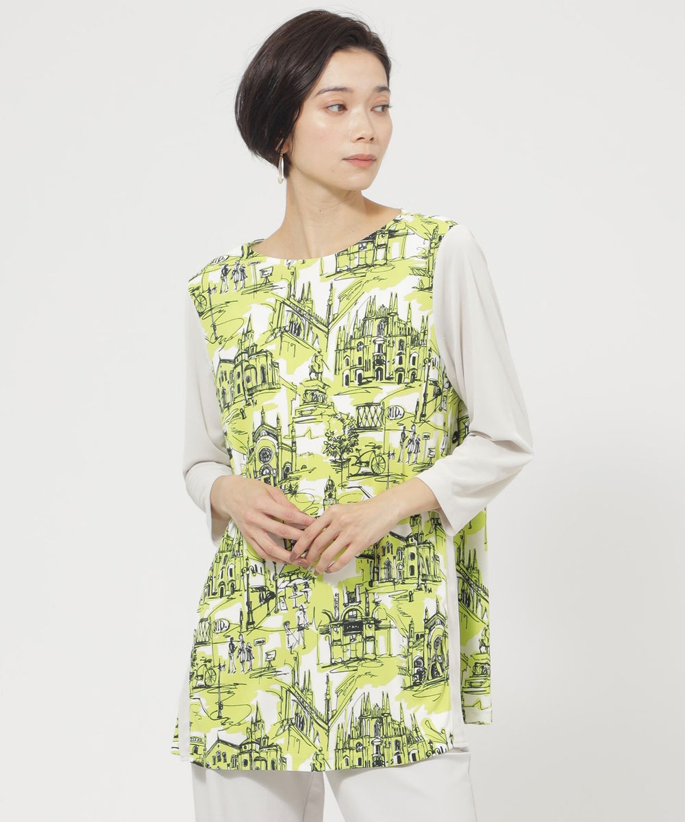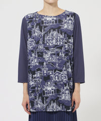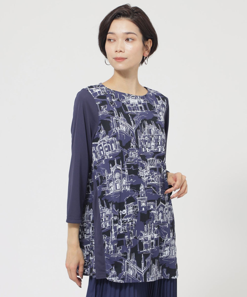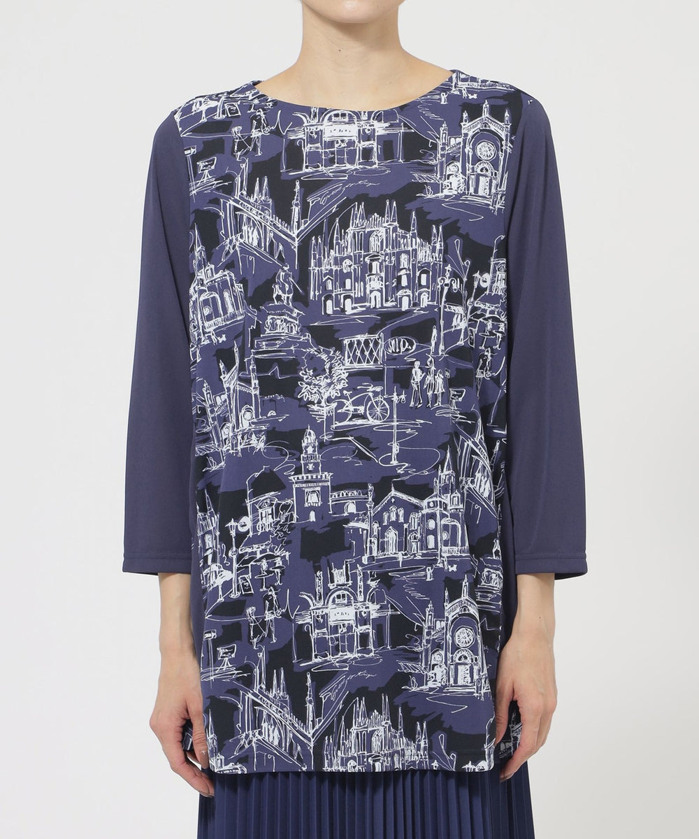 【L】【接触冷感】【ウォッシャブル】ミラノプリントプルオーバーカットソー