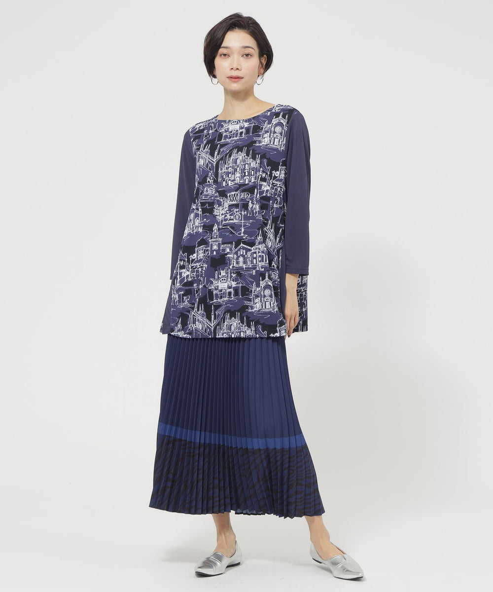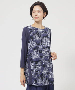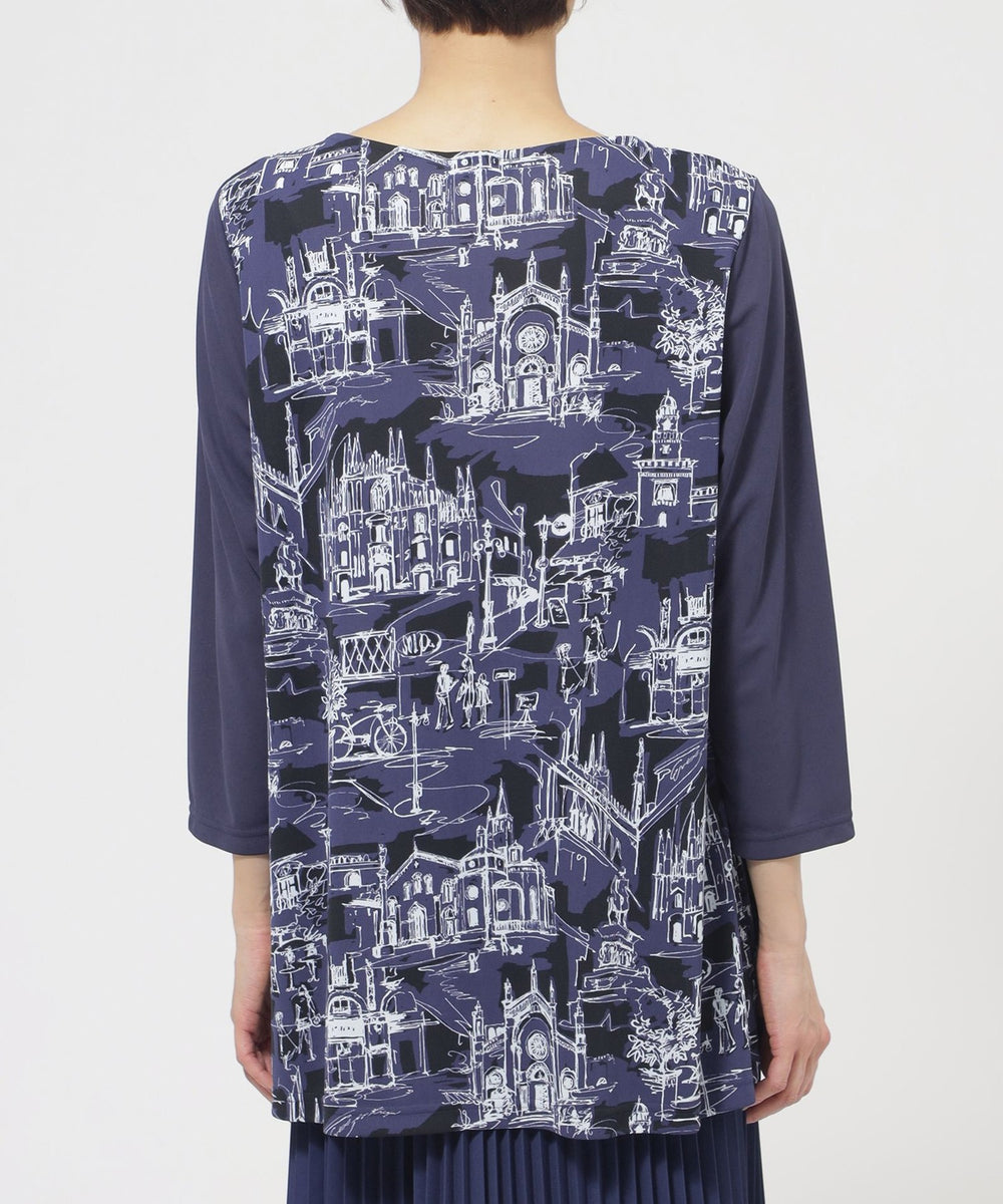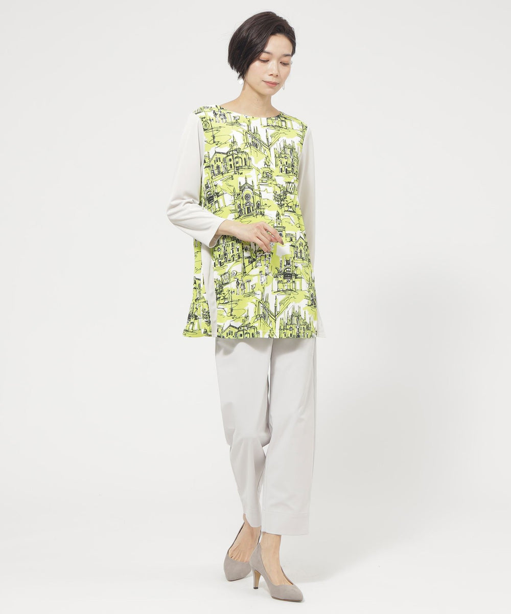 【L】【接触冷感】【ウォッシャブル】ミラノプリントプルオーバーカットソー