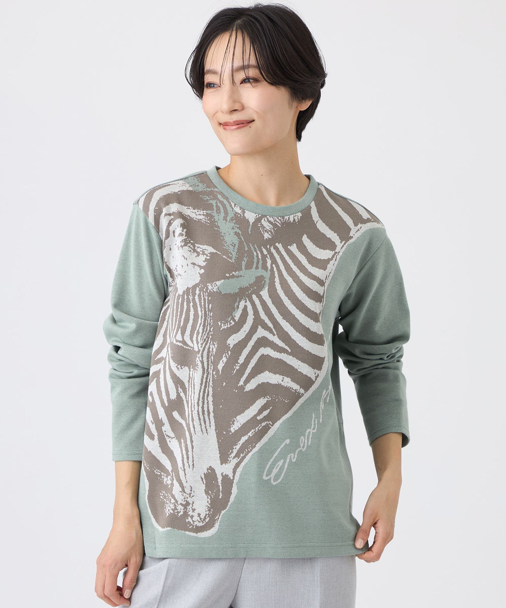 【L】【ウォッシャブル】ツインゼブラジャカードカットソー