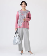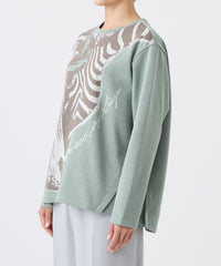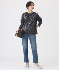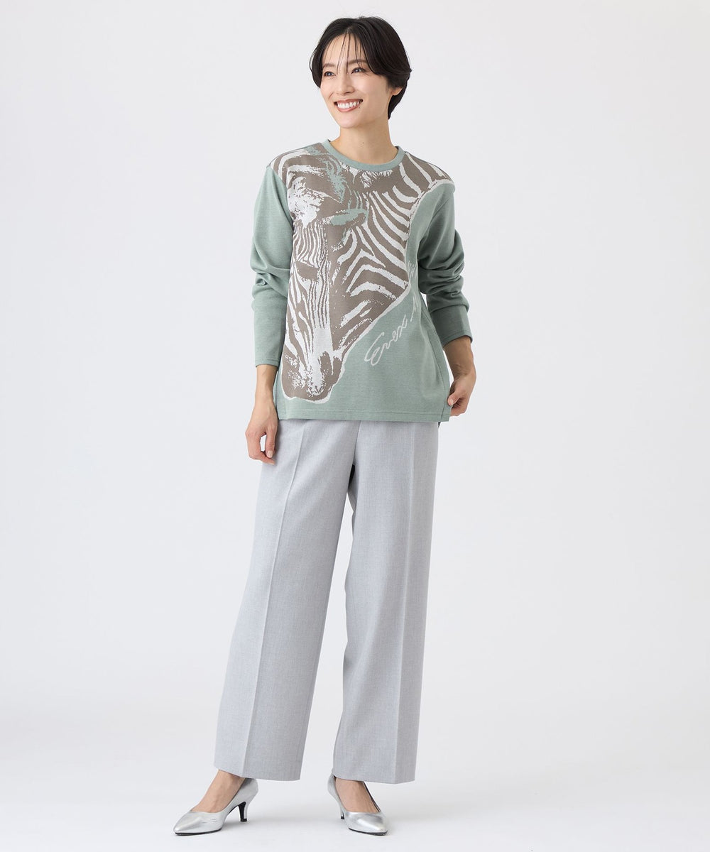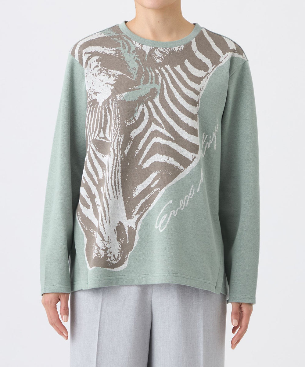 オリジナルのゼブラ柄を配したジャカード素材のカットソー。シンプルなクルーネックで、重ね着もしやすい万能アイテムです。裾は程よく前後差が付いており、ボトムを選ばず活躍します。