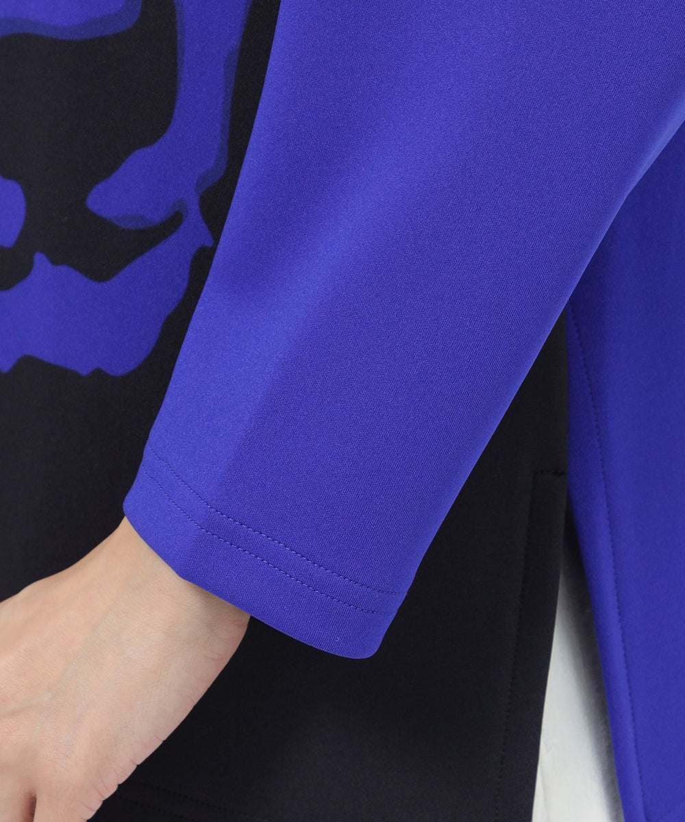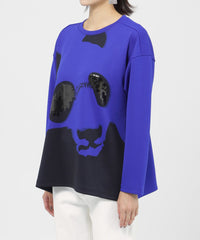 ドロップショルダーでゆったりとしたシルエットです。アーカイブのパンダ柄をモチーフに、目の部分にはスパンコールを施した贅沢なアイテムです。