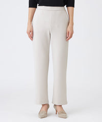 ややゆとりを持たせたストレートラインの、新型ダンボールニットパンツ。絶妙なシルエットで着ぶくれせず、脚をすっきりと見せてくれます。脇と内股のラインを少し前身頃側へ寄せることで、切り替え部分に陰影が付き、シャドー効果で細見えが期待できます。脇のラインはできるだけまっすぐにすることで、姿勢が良く見え若々しい印象に。体の厚みを考えたパターン設計にすることで、ラインを拾いにくく履きやすいパンツに仕上がりました。バックウエストにはゴムを施し、快適な着心地です。普段使いはもちろんワークスタイルにもおすすめの一着で、通年ご愛用いただける優秀アイテムです。