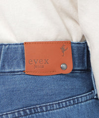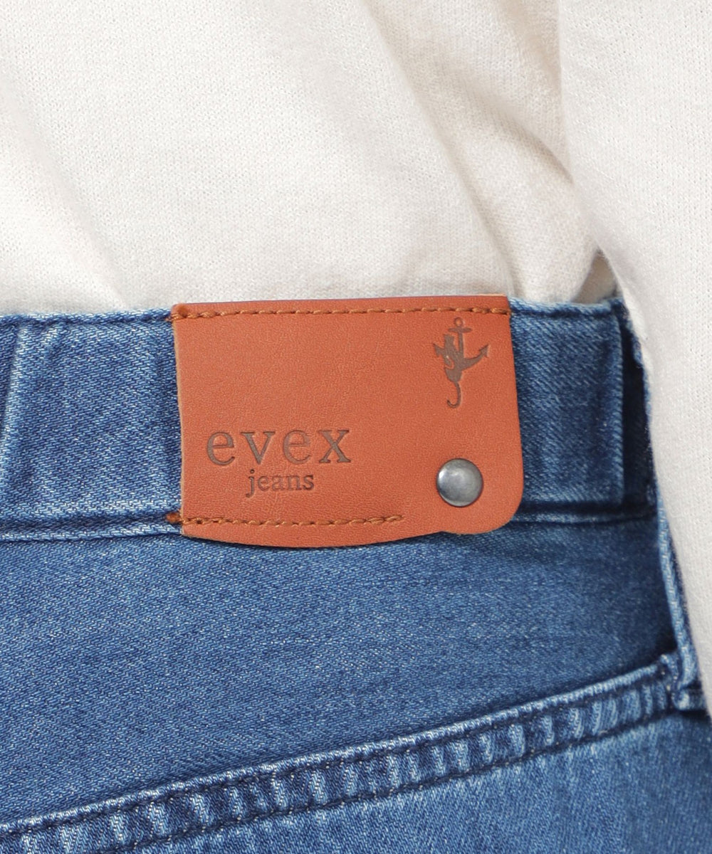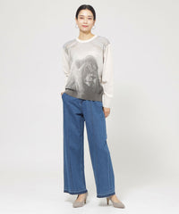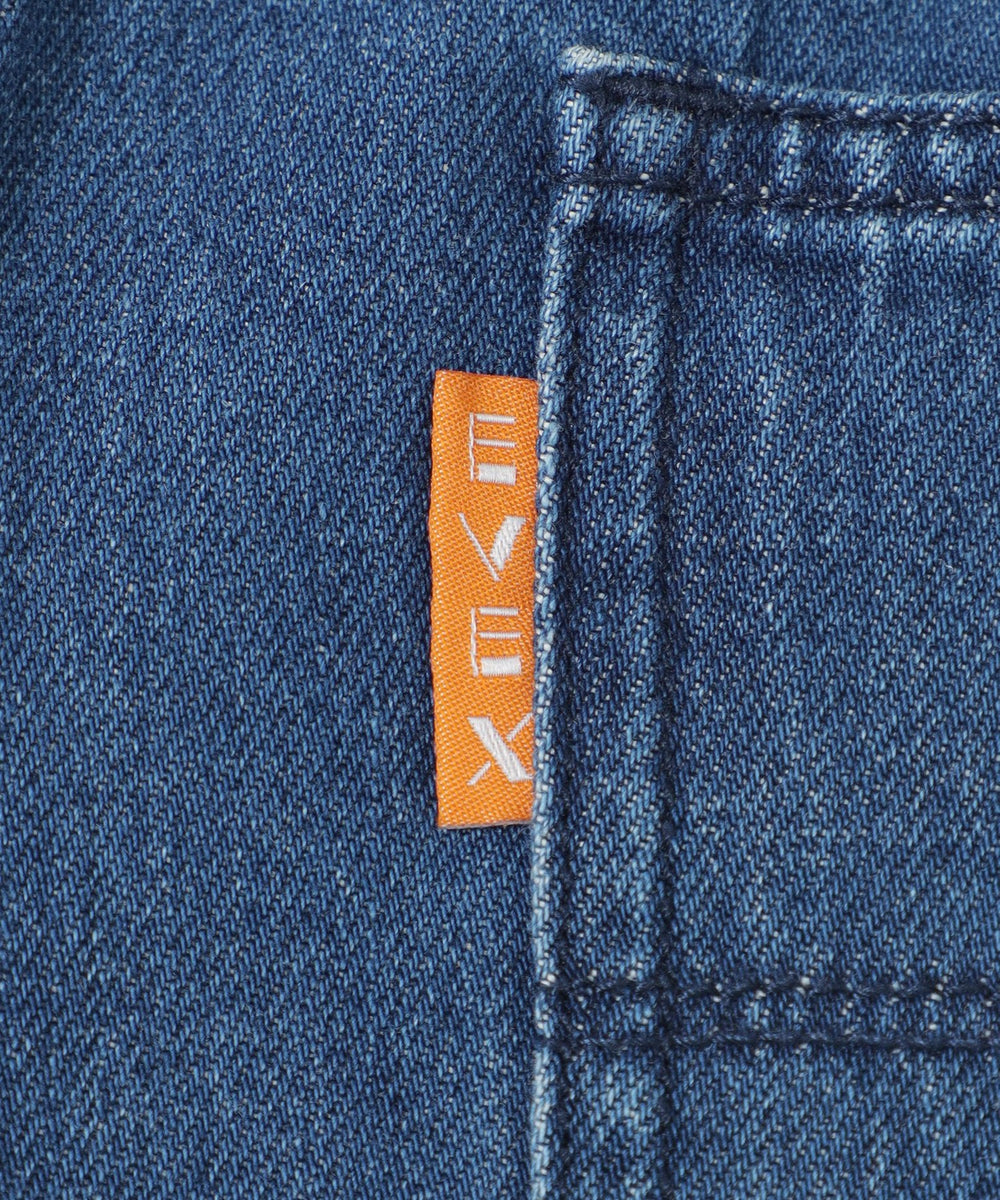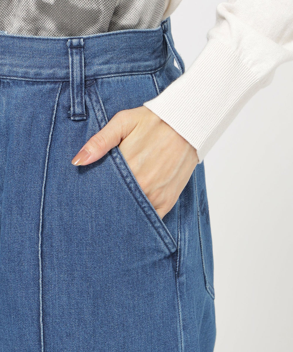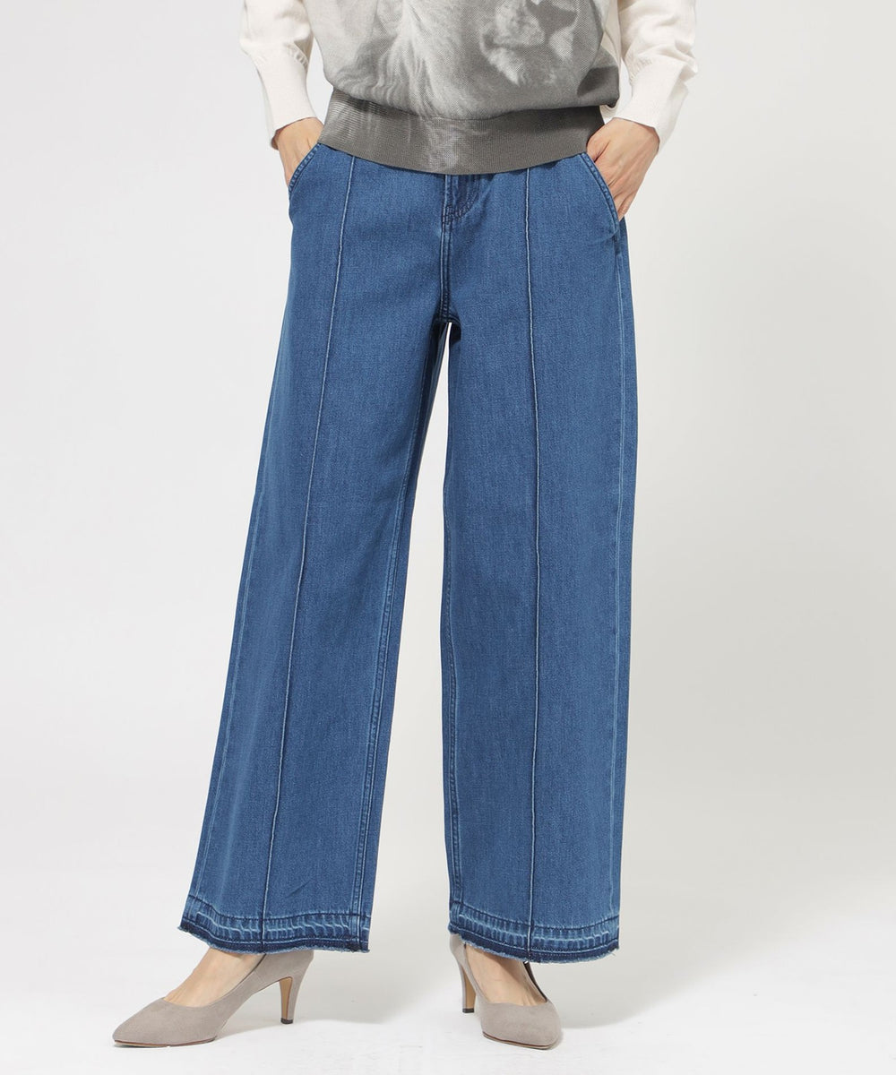 ストレートフレアデザインで、スラッと裾にかけて伸びるシルエットを表現したパンツ。脚の形を拾わないシルエットとピンタックの効果で、足をすらっと長く見せます。あえてヒゲやブラストを入れず、キレイ目なデニムに仕上げました。裾は三つ折りを洗った後に解いており、色むらと断ち切りのラフ感がカジュアルな雰囲気をプラスしてくれるデニムです。