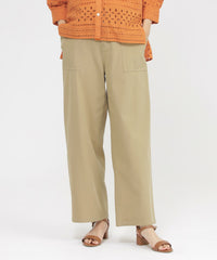 従来のベイカーパンツの履き心地はそのままに、程よくゆとりのあるストレート型を新しく作りました。太すぎず細すぎないシルエットが、大人カジュアルを品よく見せてくれるので、幅広く着こなせます。