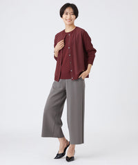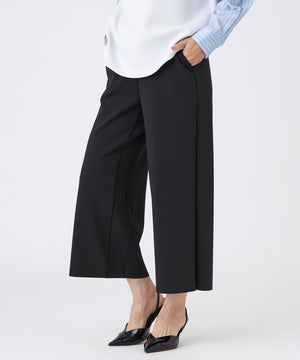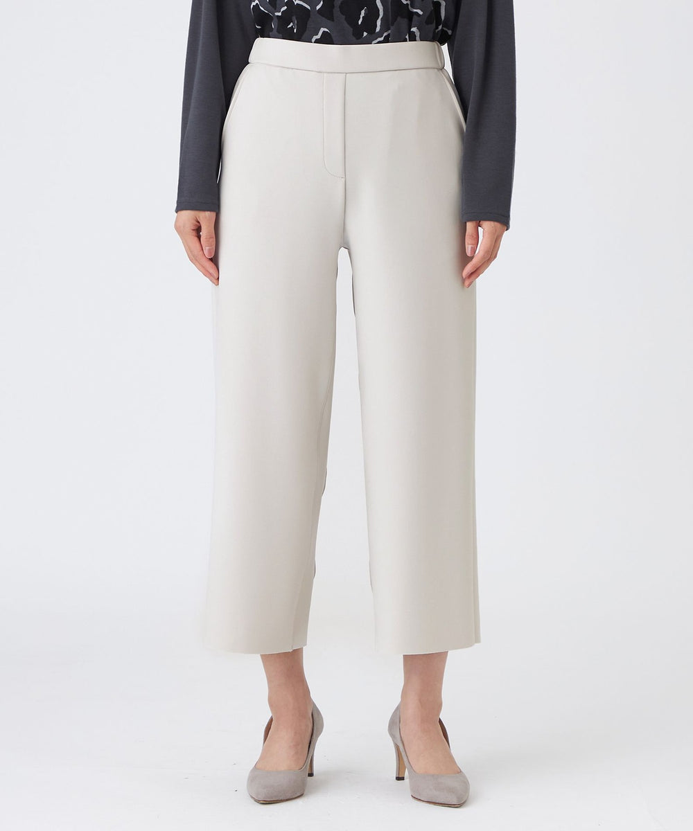 EVEX by KRIZIAのベストセラーアイテム。人気の美シルエット、秋冬バージョンの定番ワイドクロップトパンツ。ストンと落ちるシルエット、くるぶしがスッキリと見える短めの着丈、内側のマチによる立体構造が全方位から綺麗に見えるシルエットの秘訣。伸縮性のあるジャージ素材、総ゴムのウエストが履き心地のよさを叶えます。カジュアル感をプラスする、カットオフの裾もポイントです。