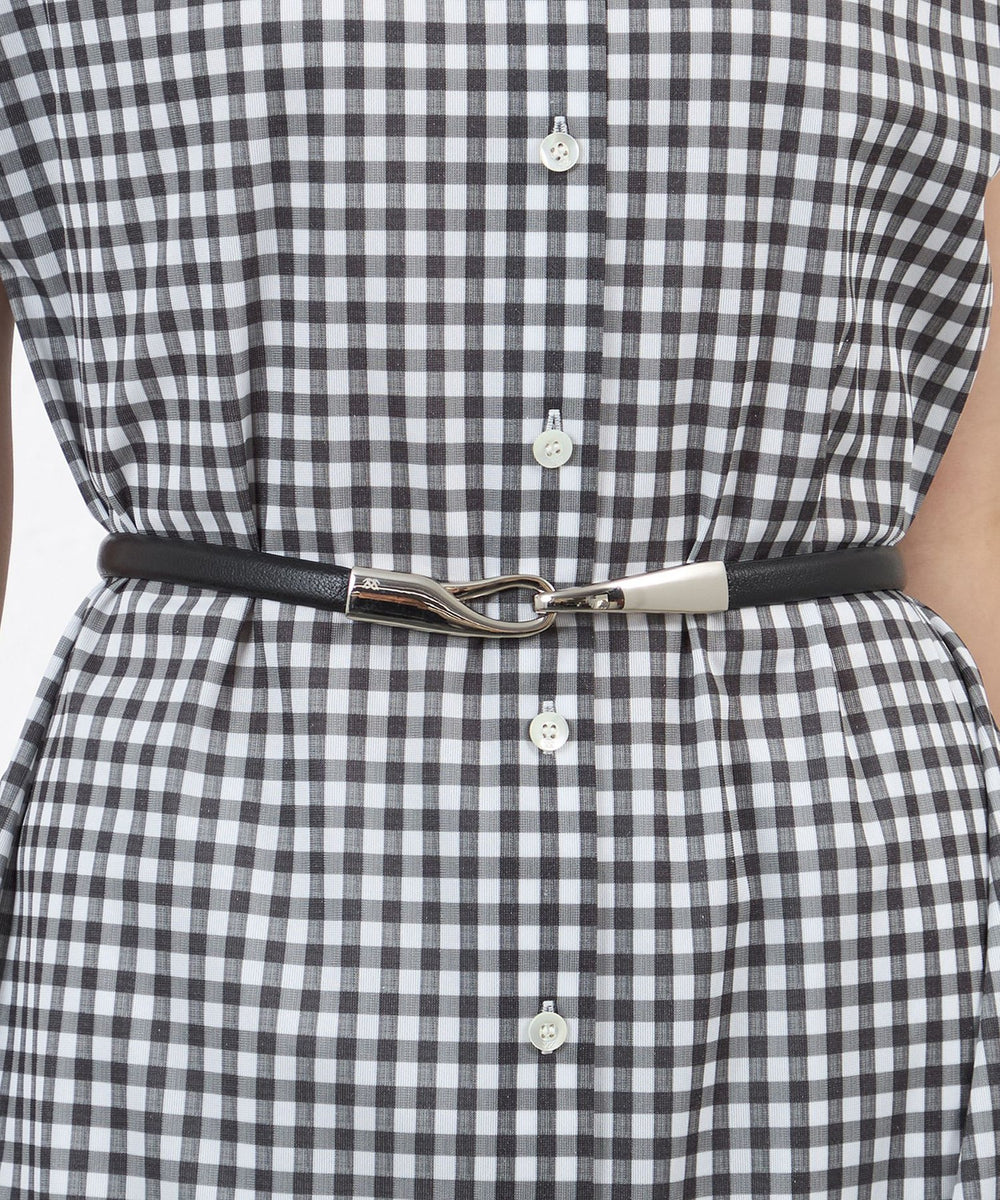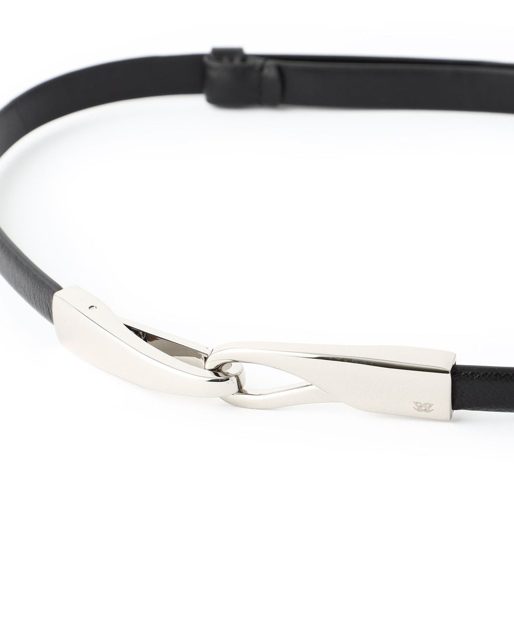 AMACA定番のアジャストベルト。存在感のあるフックデザインのメタルバックル使いで、背面部分で長さが調整できるベルトです。