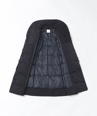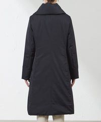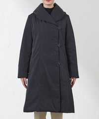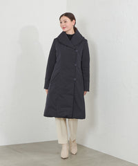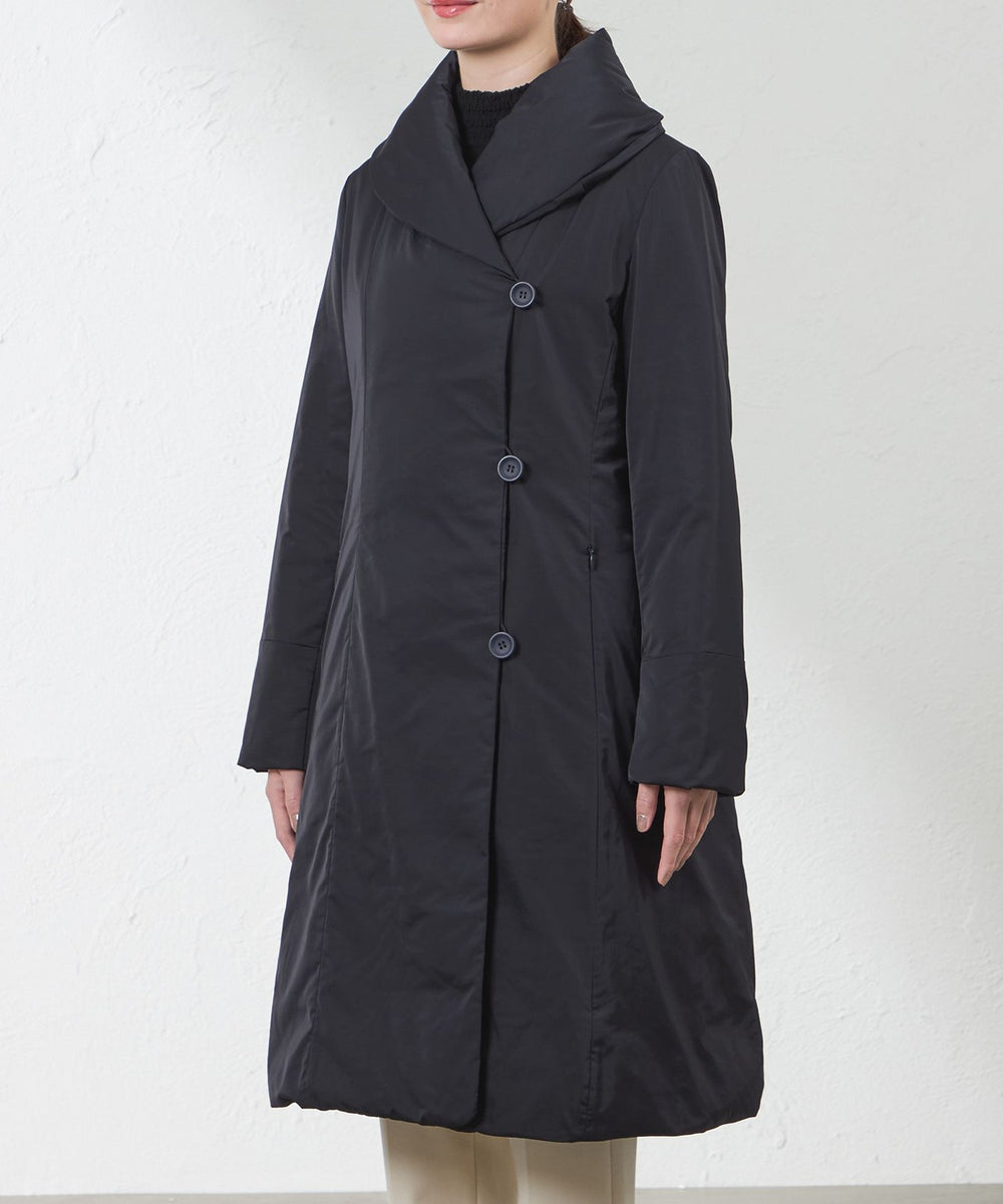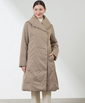 ふわりとした襟、スッキリとしたラインがエレガントなロング丈のショールカラーダウンコート。
