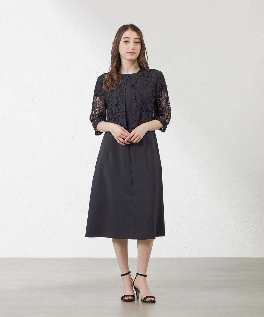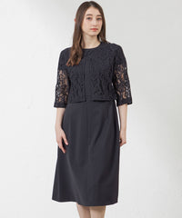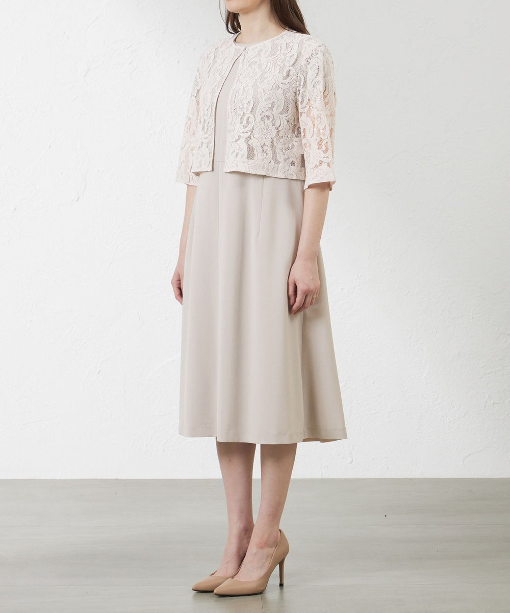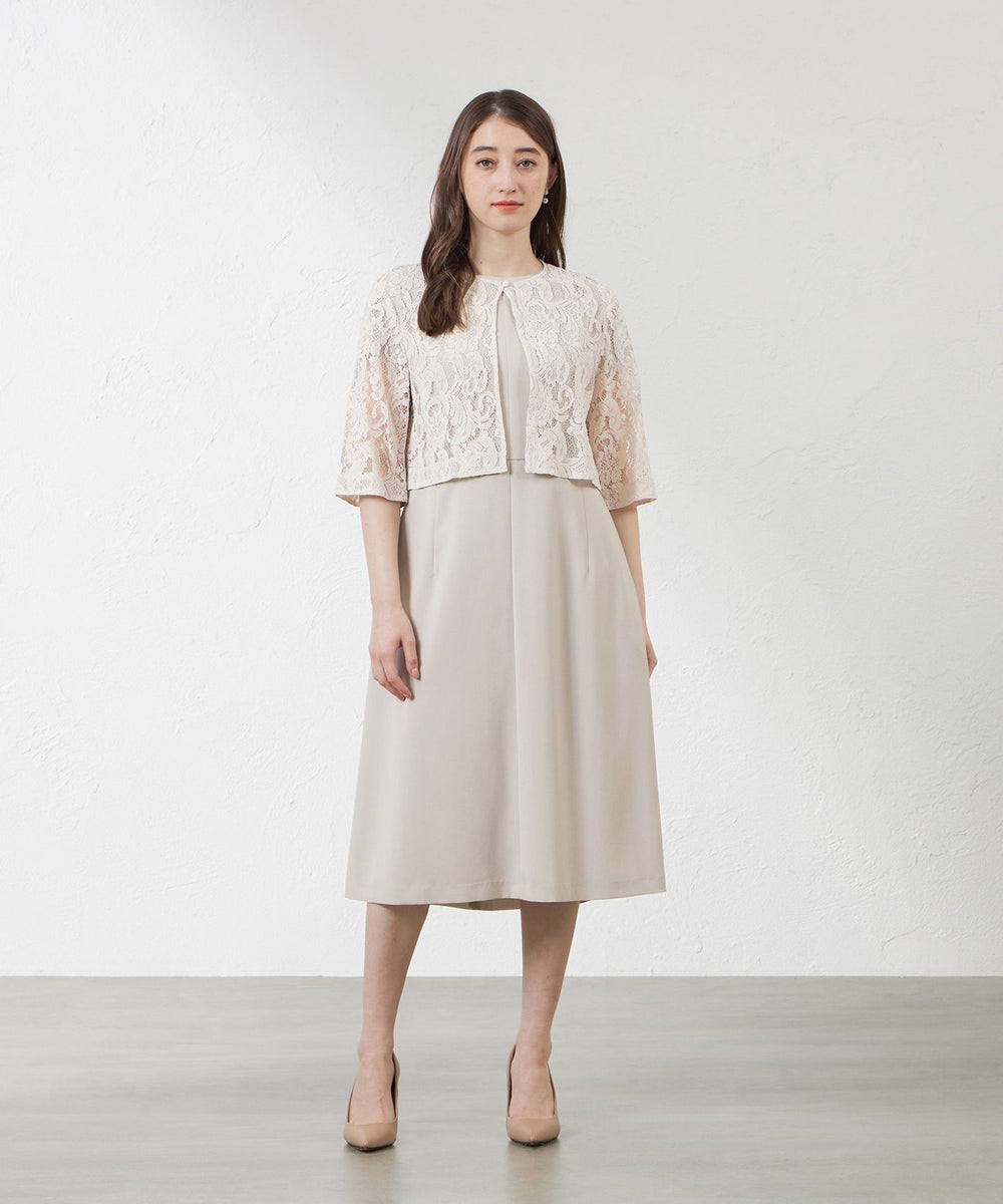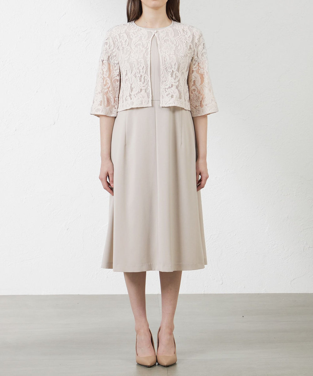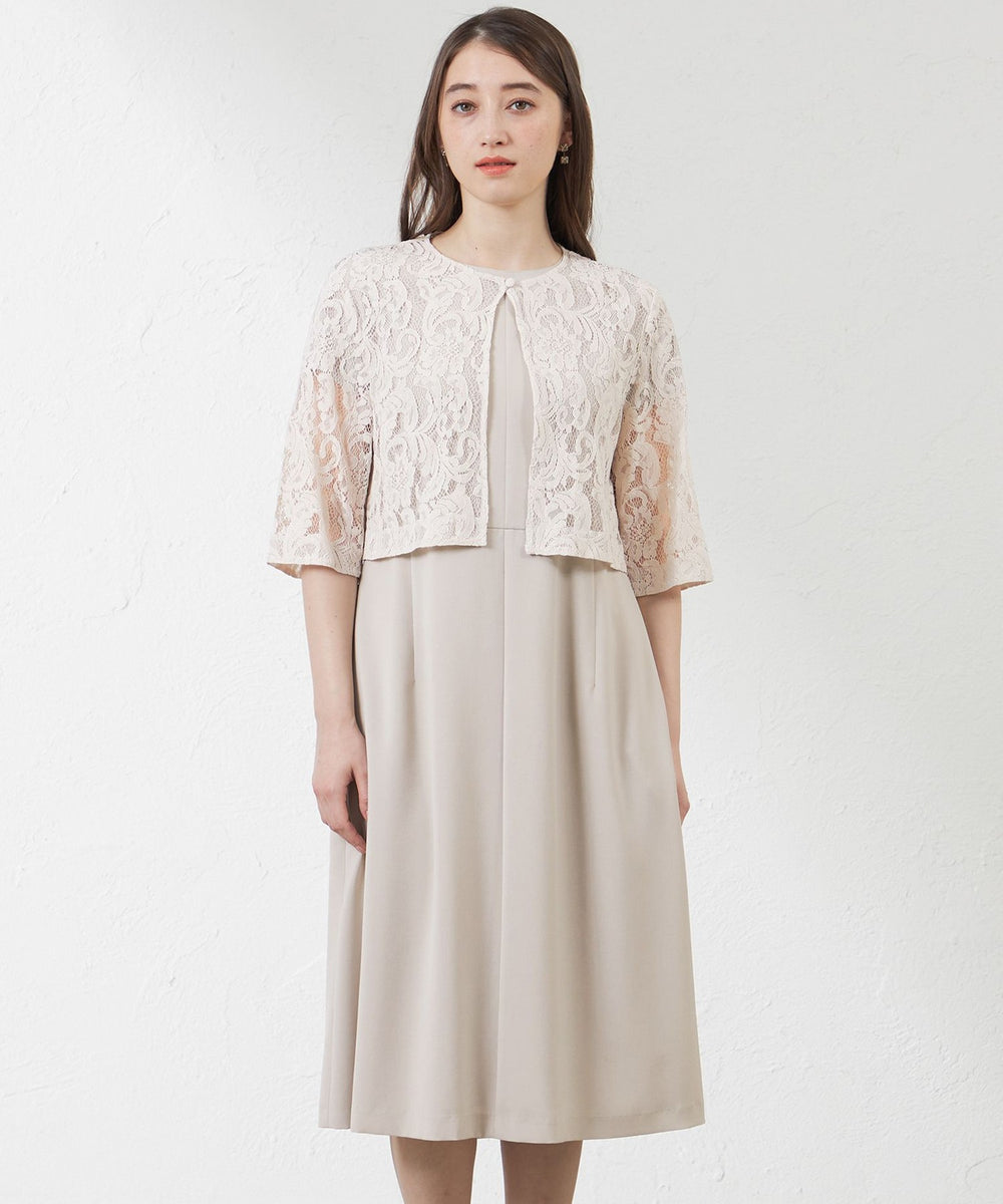 AMACA リネンライクポリエステルワンピース レースボレロセット ¥22,000税込