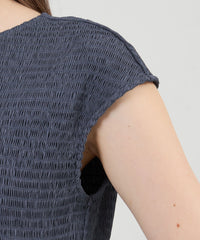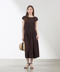 -上品かつすっきり見え。 シャーリングが目を惹くフレンチスリーブワンピース-