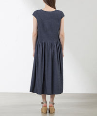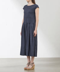 上身頃にシャーリングを入れたすっきり見えするワンピースです。