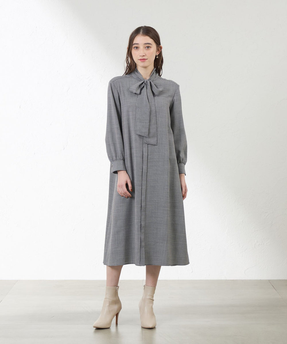 取り外し可能な共地のボウタイ付きで、ふんわり結べばお顔まわりが華やぎ、きれいめスタイルのアクセントに。