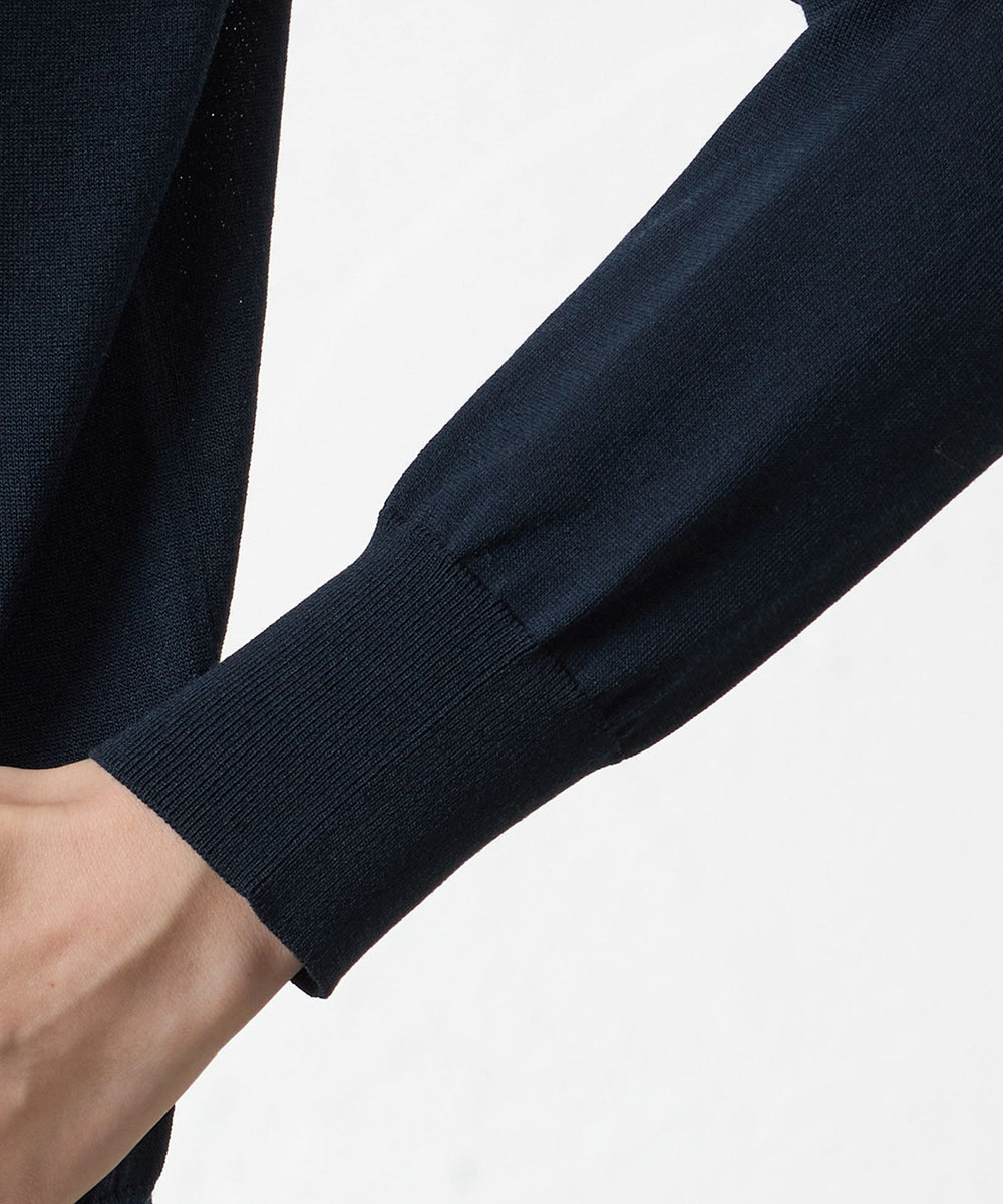 程よくウエストを絞ったコンパクトなシルエットで小さめのクルーネックのデザインです。