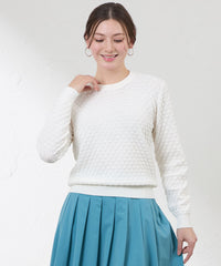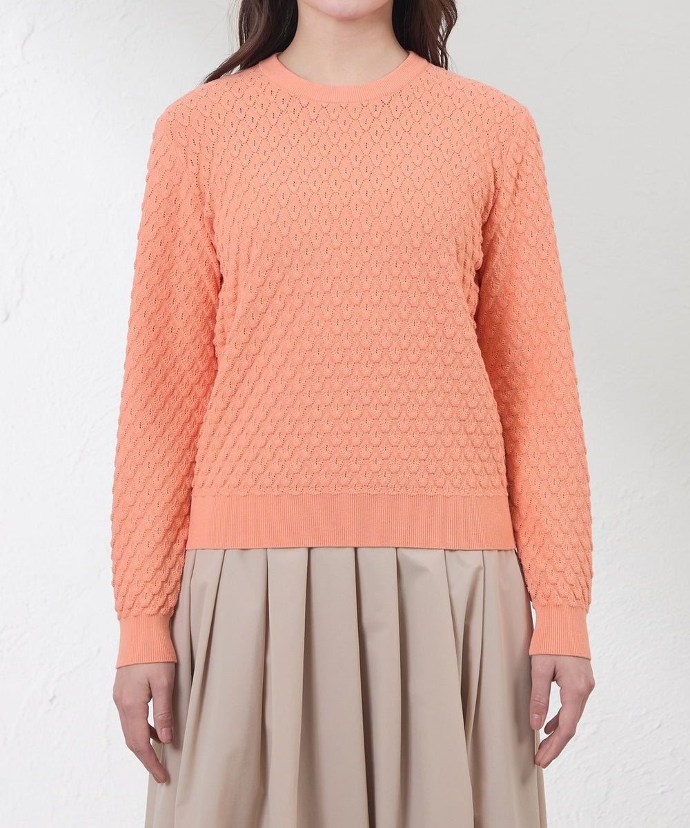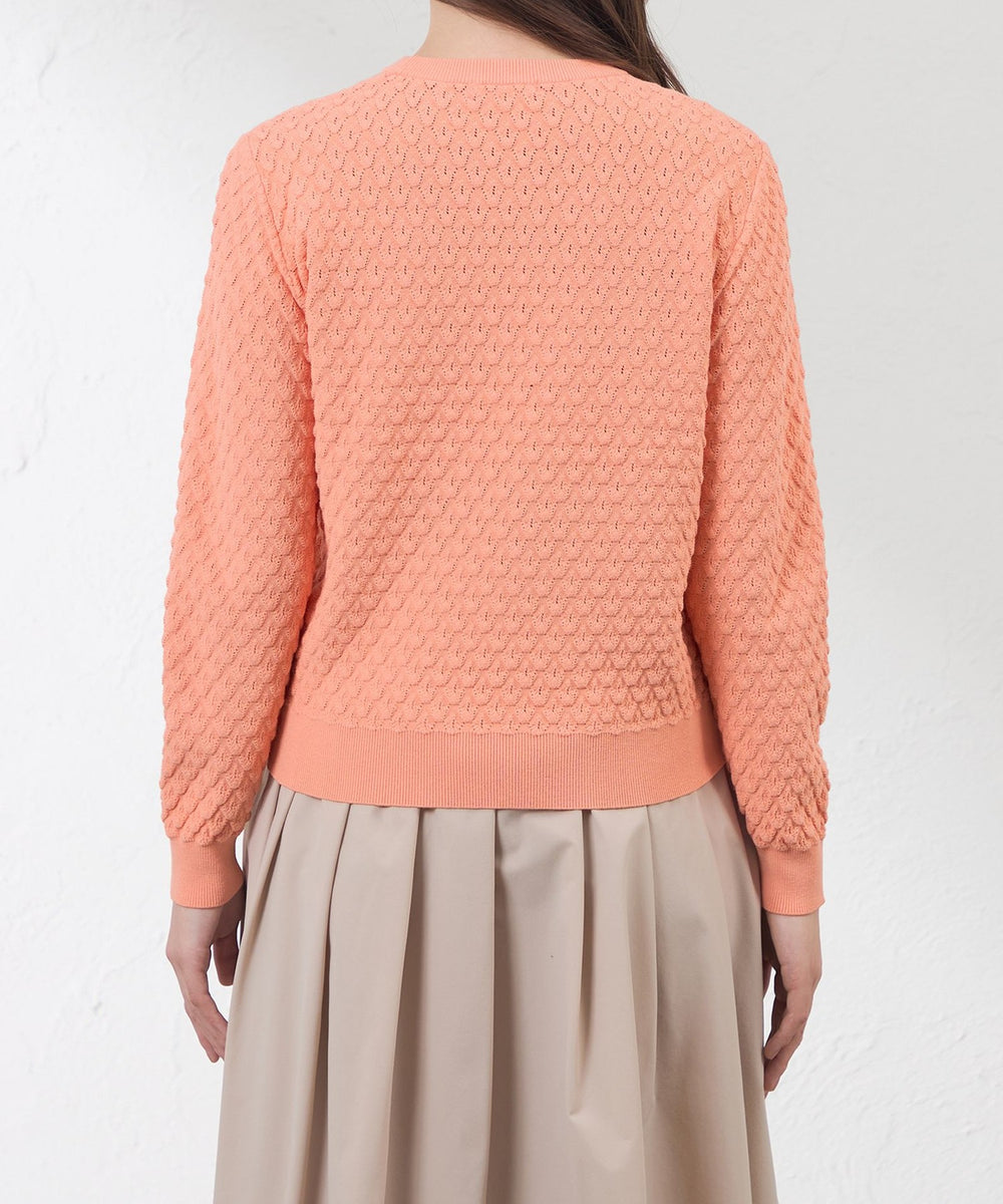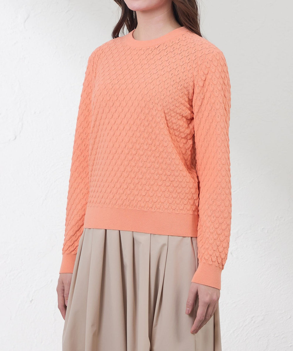 貝殻のような繊細なレース柄が美しく映える、ボクシーなシルエットのクルーネックプルオーバー。