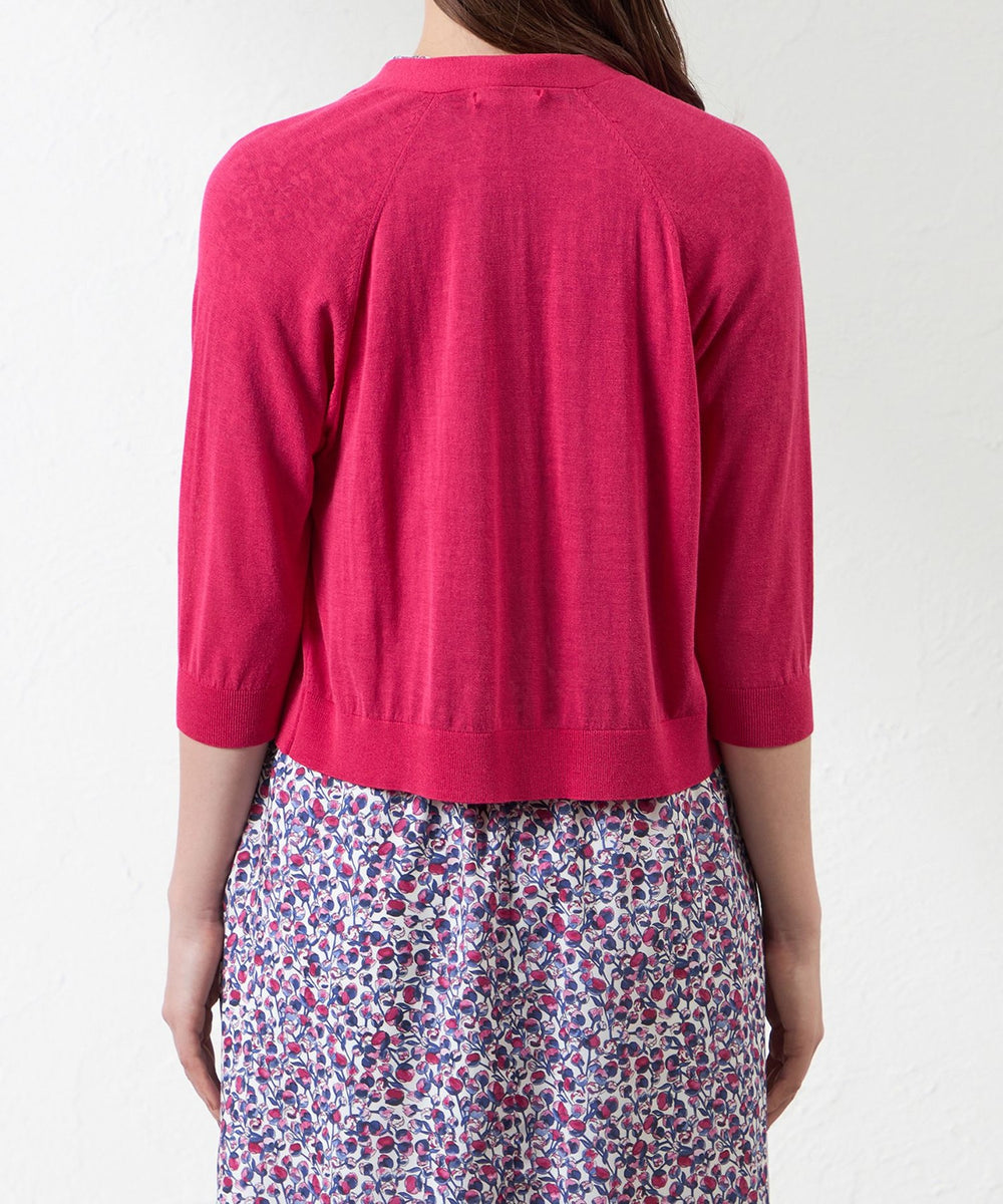 シンプルなデザインでコーディネートしやすくワンピースの上にさらりと羽織れる一枚です。