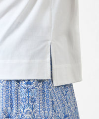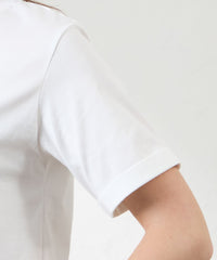 コットンとポリエステルで交編したカットソー素材です。布帛ライクな表情と風合いを持っており、接触冷感で快適な着心地が保てます。