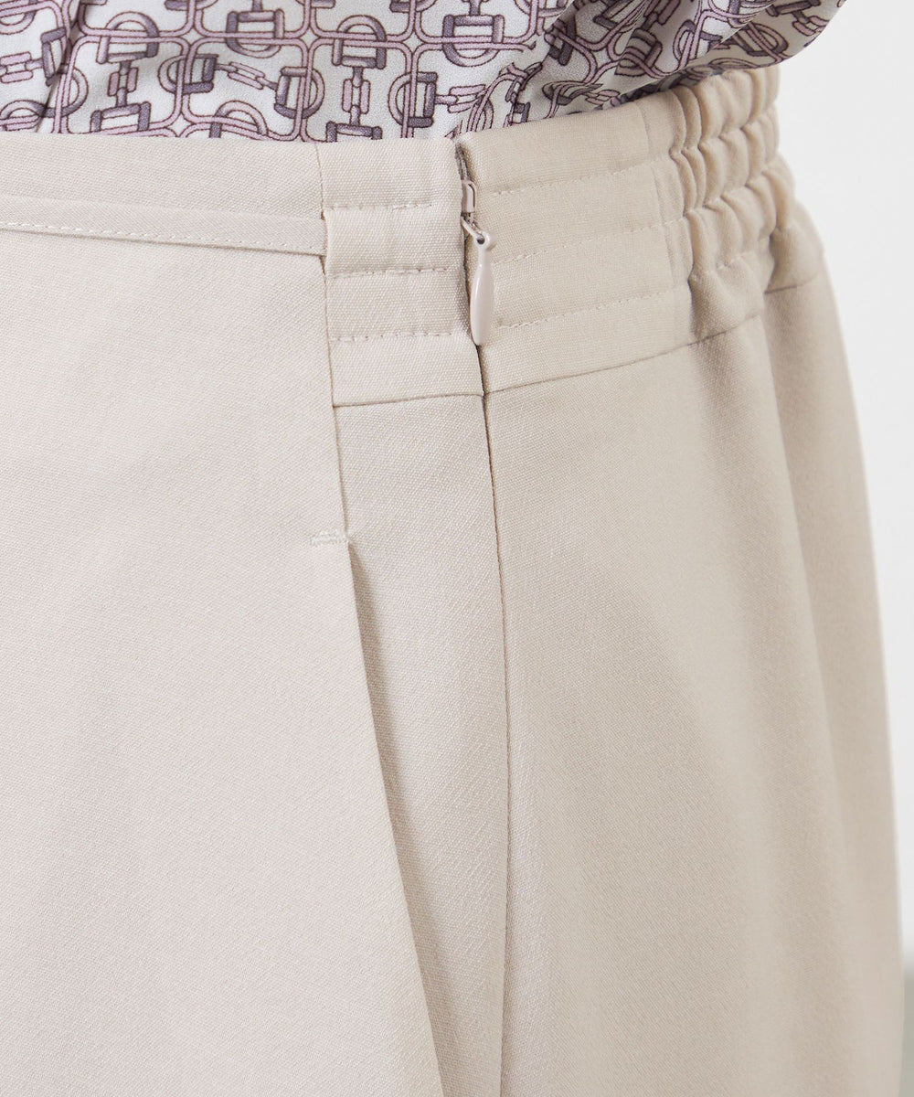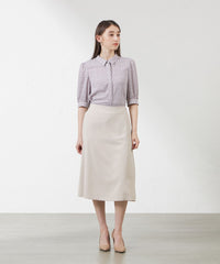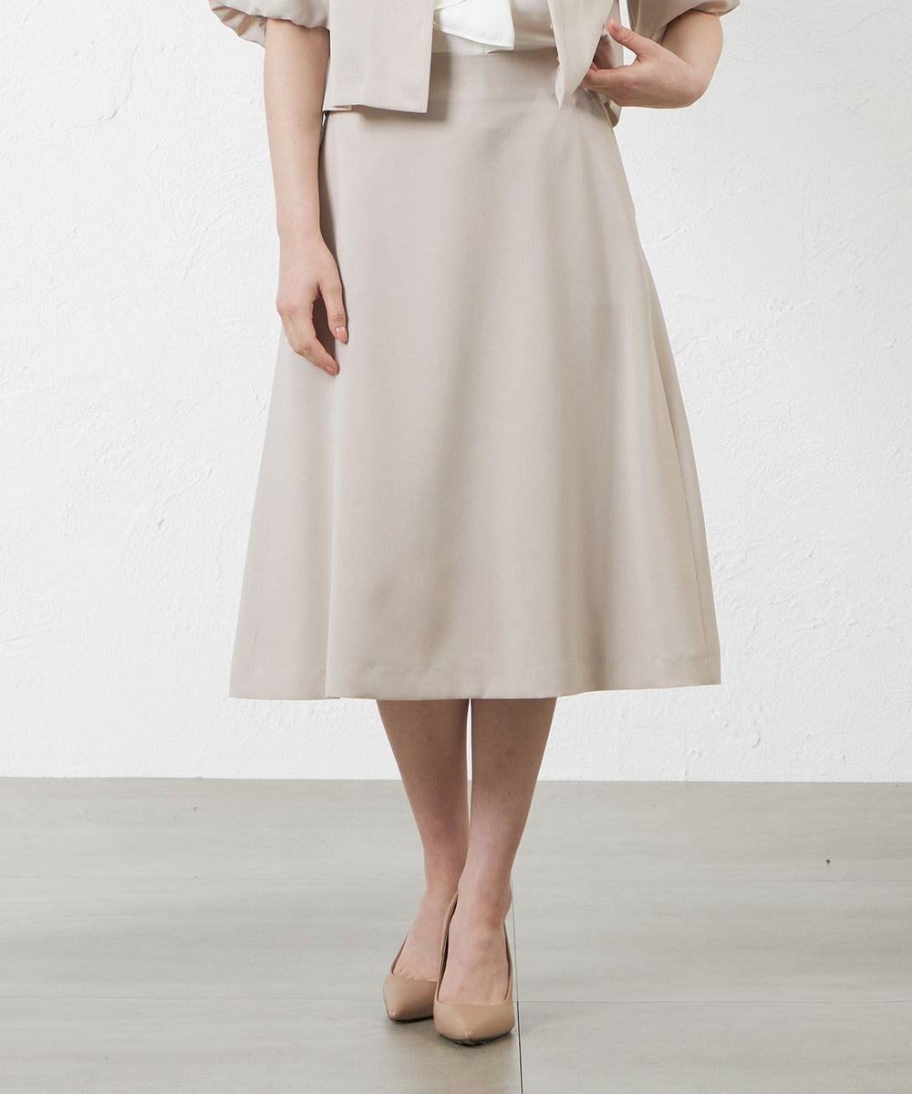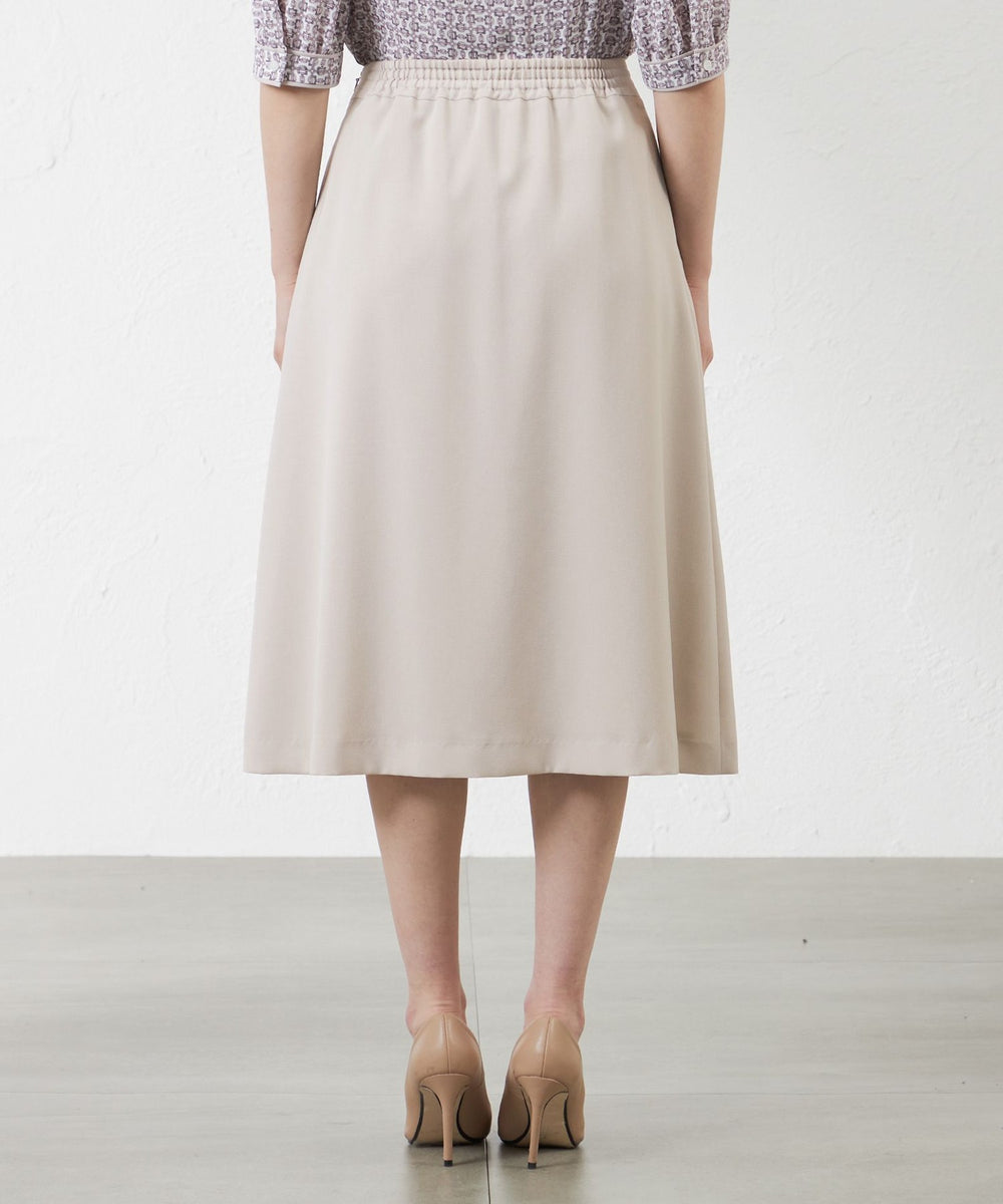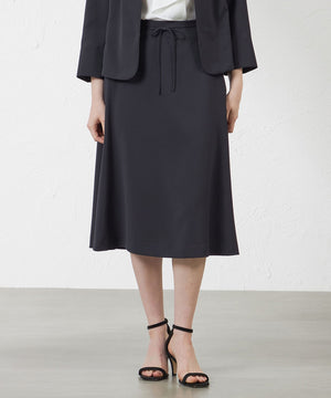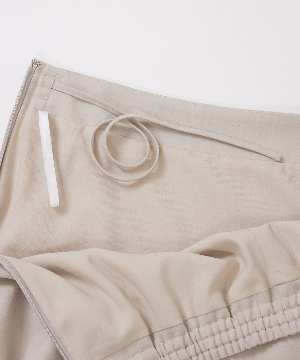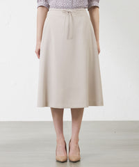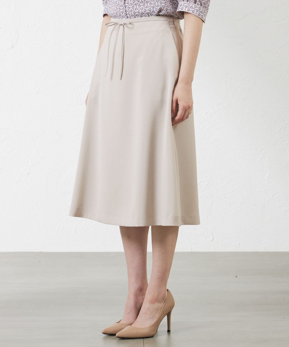 センター切替のフレアスカートです。ウエストの細リボンはホールに通すと内側にしまうことができる2WAYのデザインです。