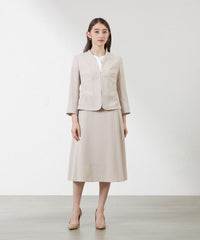 リサイクルワルツ糸とスパン糸を使用した素材です。天然ライクでナチュラルな表情とドライタッチ及びソフトストレッチ性を備えた素材で、さらりとした風合いで幅広いシーズンでお使いいただけます。リサイクルポリエステル100%使用となります。
