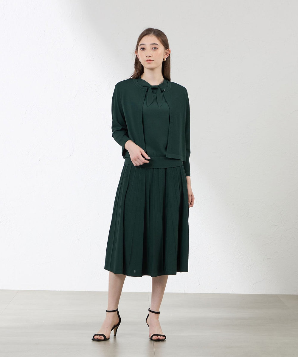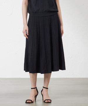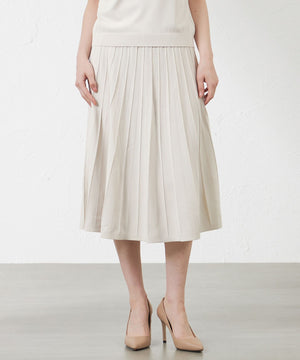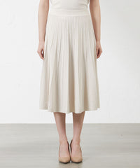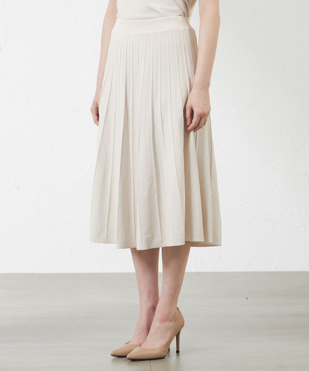 さりげないアイレット柄が涼し気なプリーツ風のフレアラインが美しいニットスカートです。(裏地付き)