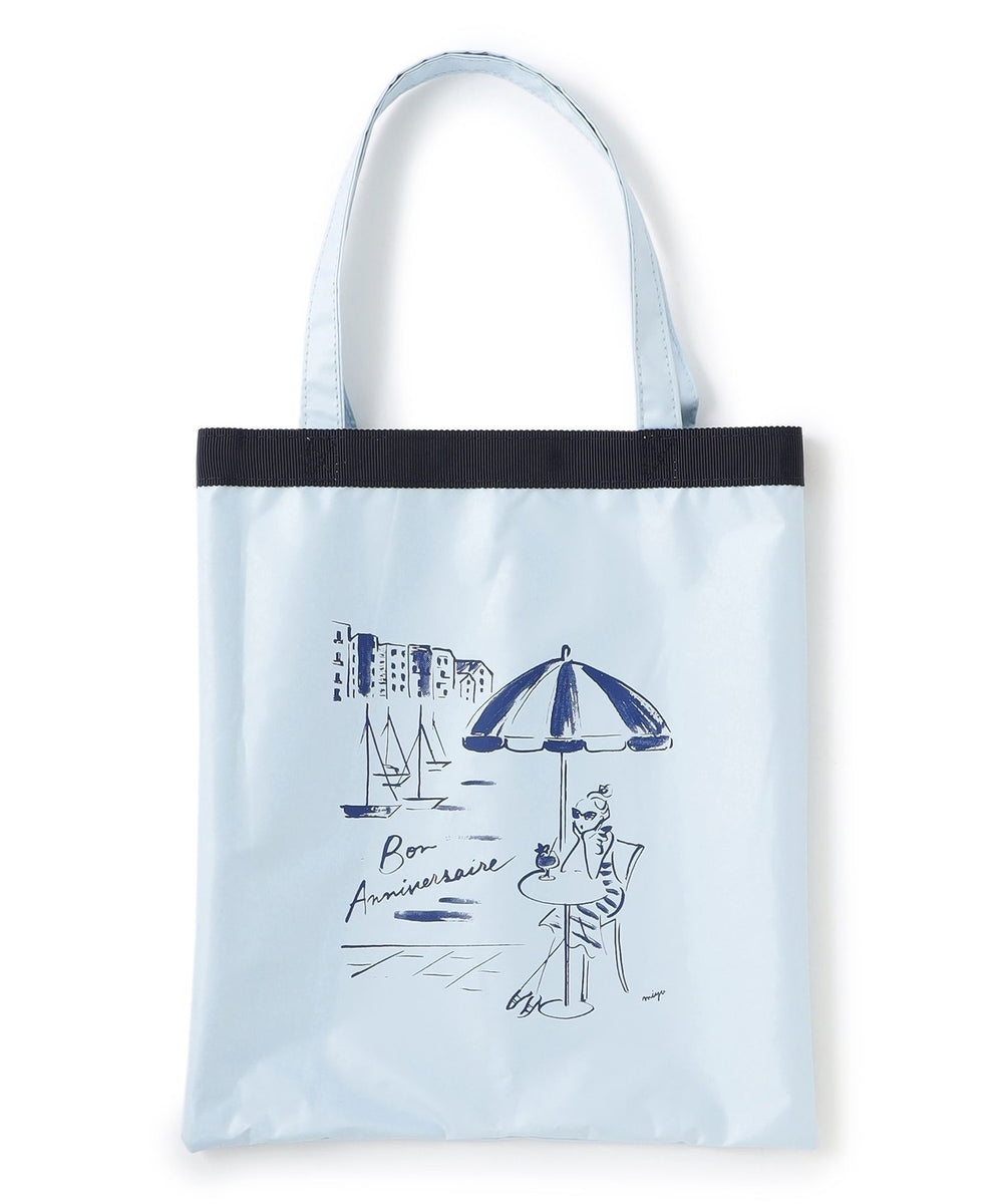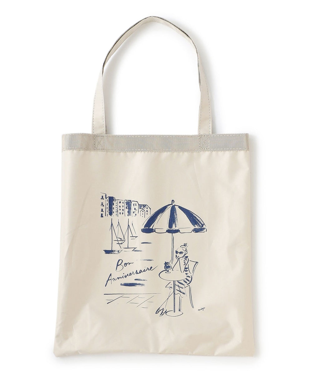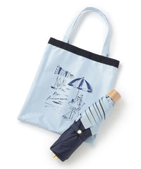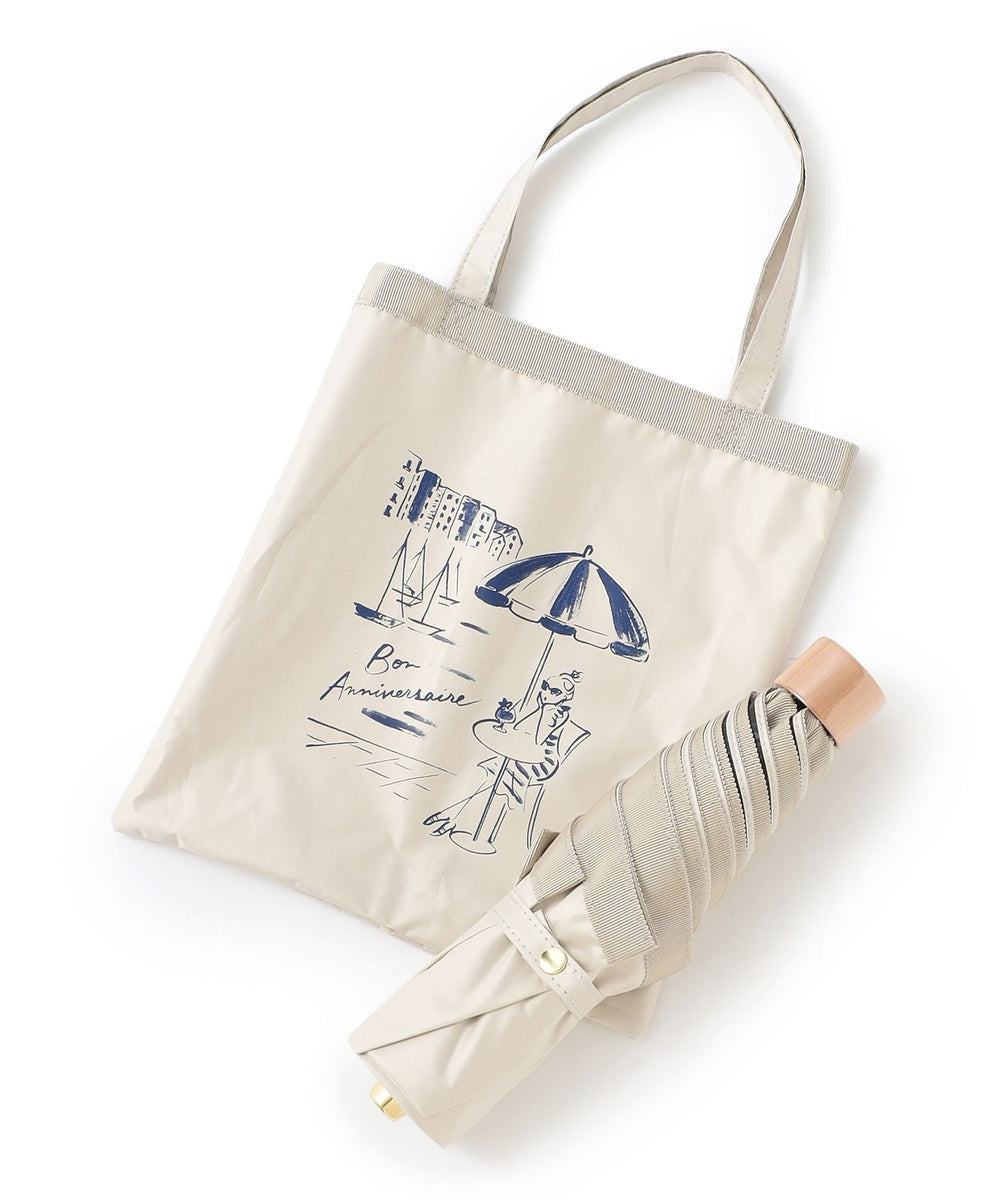 イラストレーターの大橋美由紀さんとコラボレーションした晴雨兼用傘。傘本体は無地で縁にグログランテープをトリミングしたたシンプルデザインに、AMACAのゆりかごマークをあしらいました。傘袋には大橋美由紀さんのイラストをのせて可愛らしく。イラストはAMACAオリジナルでプロヴァンスでのバカンスのイメージで書き下ろしていただいて、パラソルの下でドリンクを飲む女の子のイラトスを傘袋にオン。晴雨兼用で紫外線遮蔽率99.9%以上の日傘として、また雨傘としてもお使いいただけます。傘袋はドット釦を外せばミニバッグのようになり、濡れた傘をさっと入れられるほか単体でミニバックとしてもお使いいただけます。