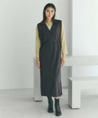 一枚で二通りの着こなしができる点が気に入っています。カシュクールで着ればきれいめな印象に、ラウンドネックにすれば優しい雰囲気になります。ドロストで丈を調整できるので、ロング丈で着たり、少しブラウジングさせたりと、その日の気分やコーディネートに合わせて変化をつけられます。残暑の時期はカットソーと合わせ、冬はタートルニットとレイヤードするなど、季節を問わず活躍してくれるワードローブの強い味方です。