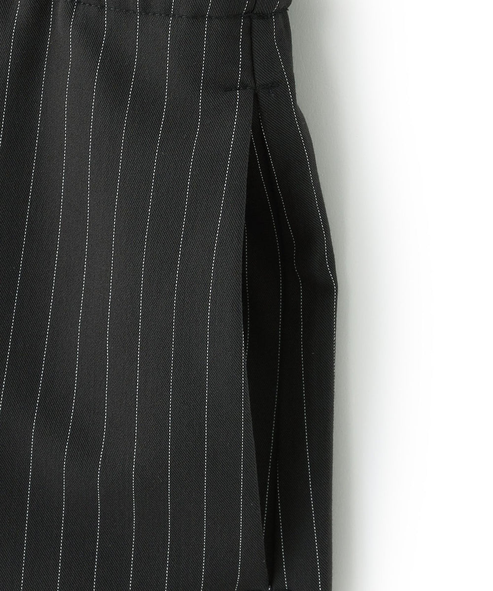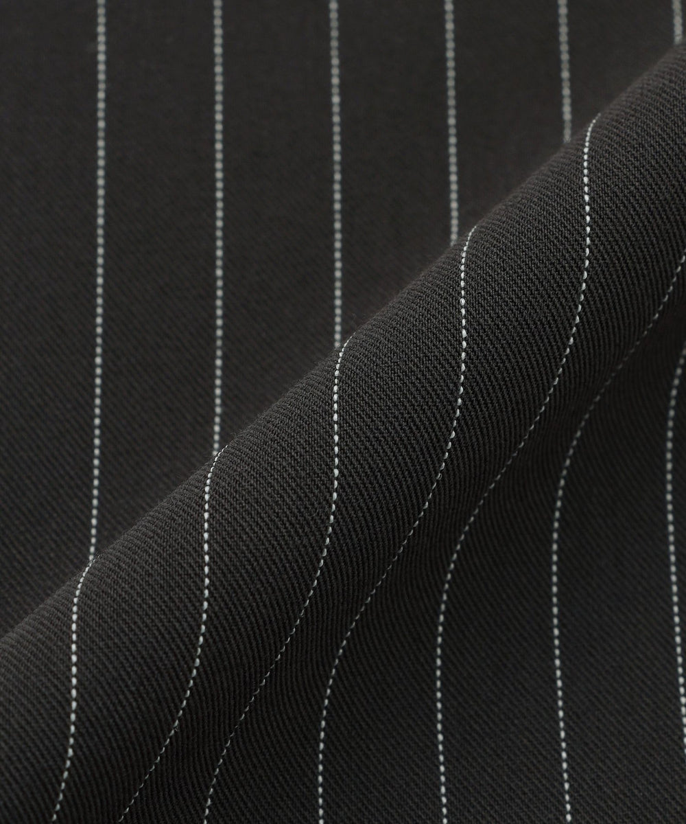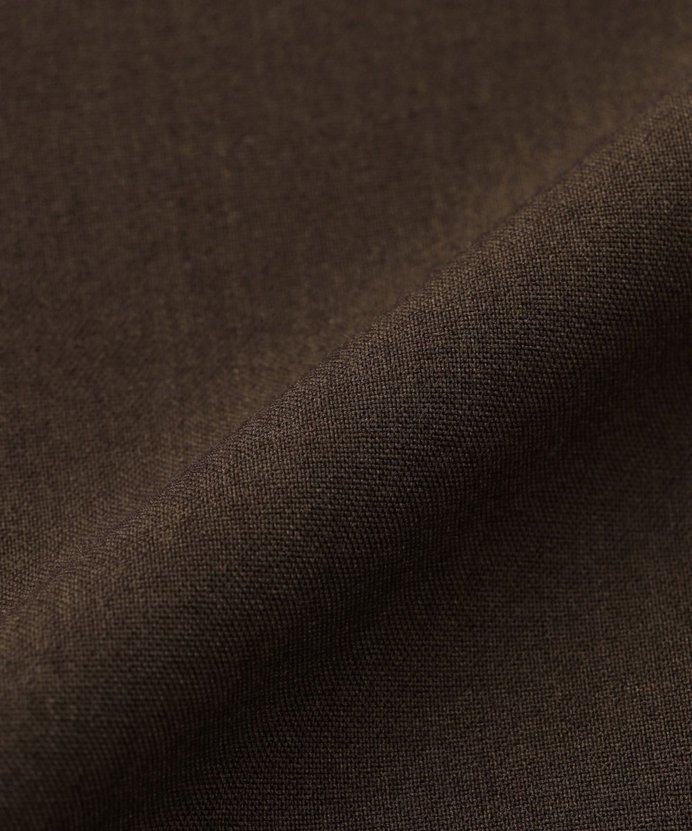 知的でシャープな印象のピンストライプ(#09ブラック)と、トレンドの深みのあるブラウン無地(#56ブラウン)、カラーによって印象の異なる素材を採用。厚すぎず薄すぎないほどよい厚みで、さらっとした落ち感があり、美しいシルエットを演出します。シーズンレスで活躍する心地よい着用感で、レイヤードにも最適です。