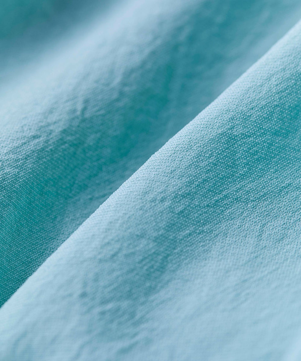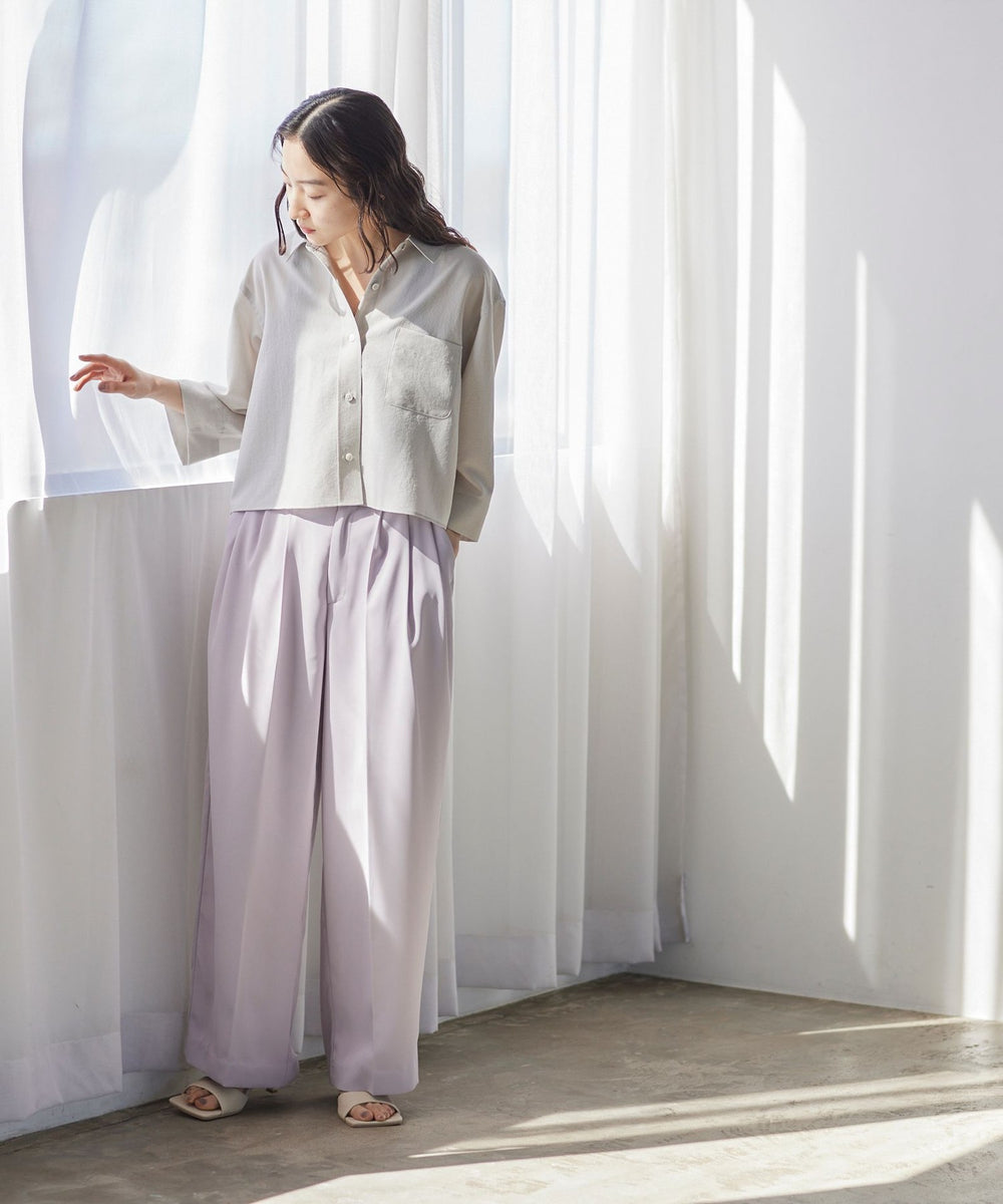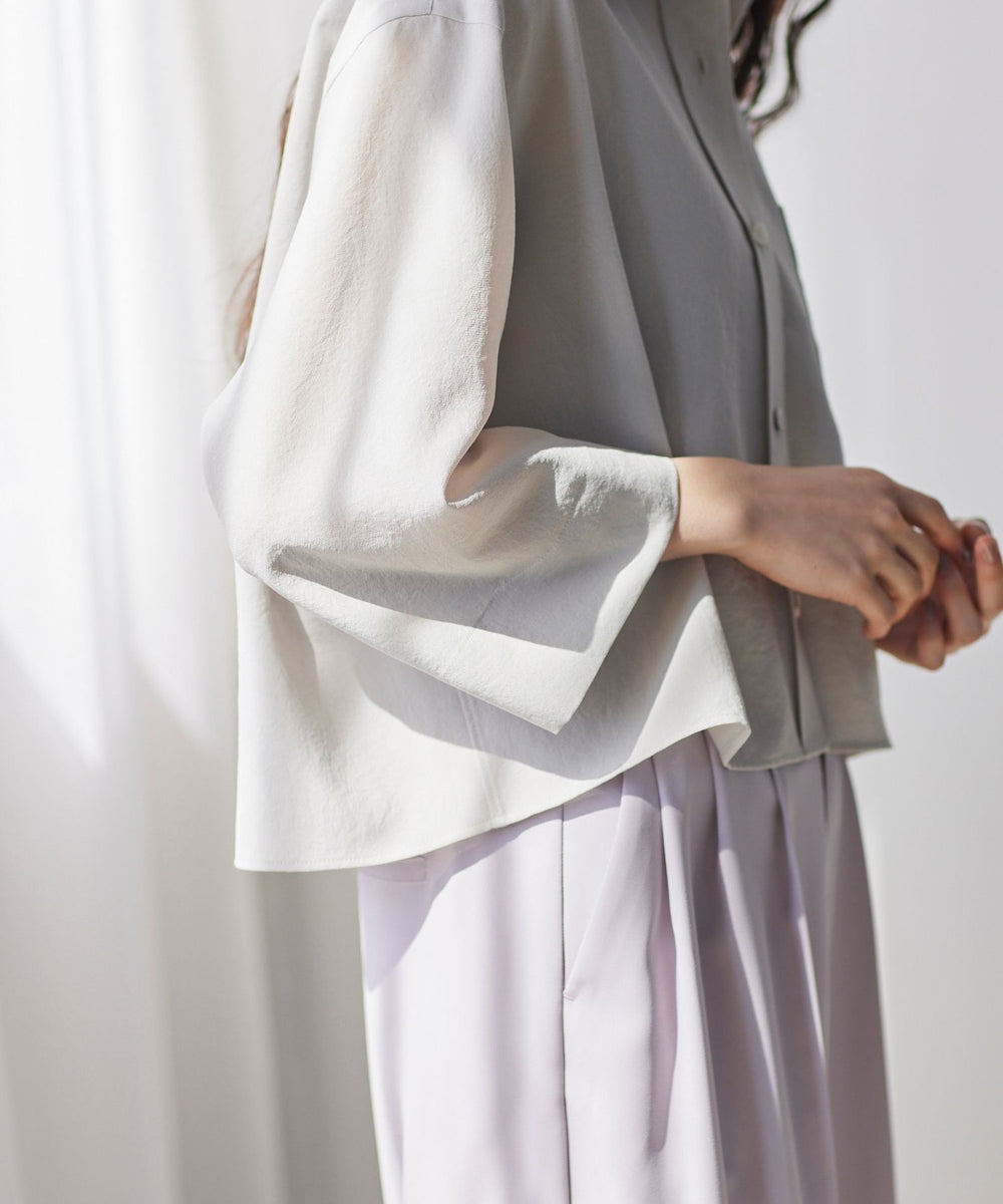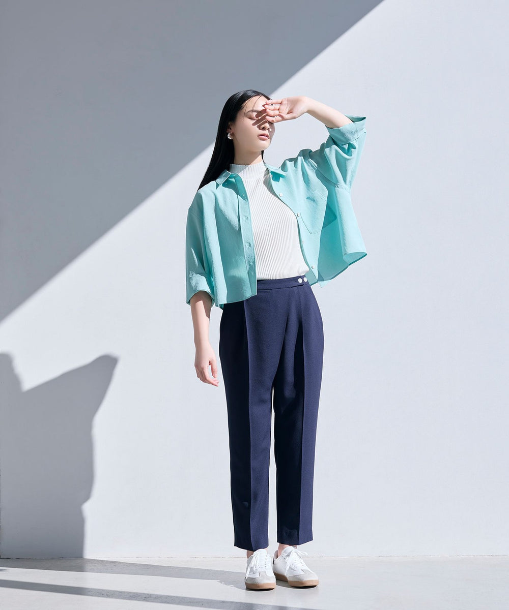 広めの三つ折り袖口はロールアップも簡単で、季節や気分に合わせてアレンジ可能。