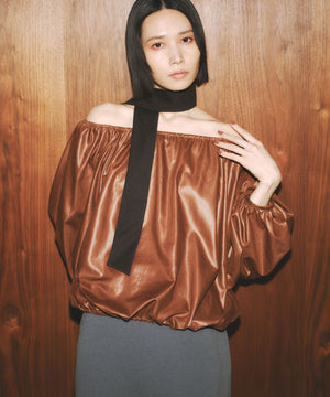 【BAILA12月号掲載】【BAILAコラボ企画】レザー見えバルーン3WAYブラウス