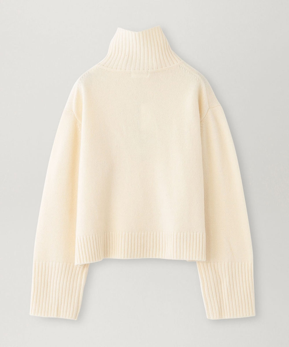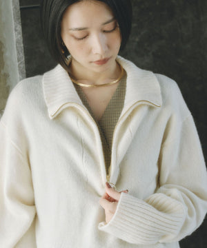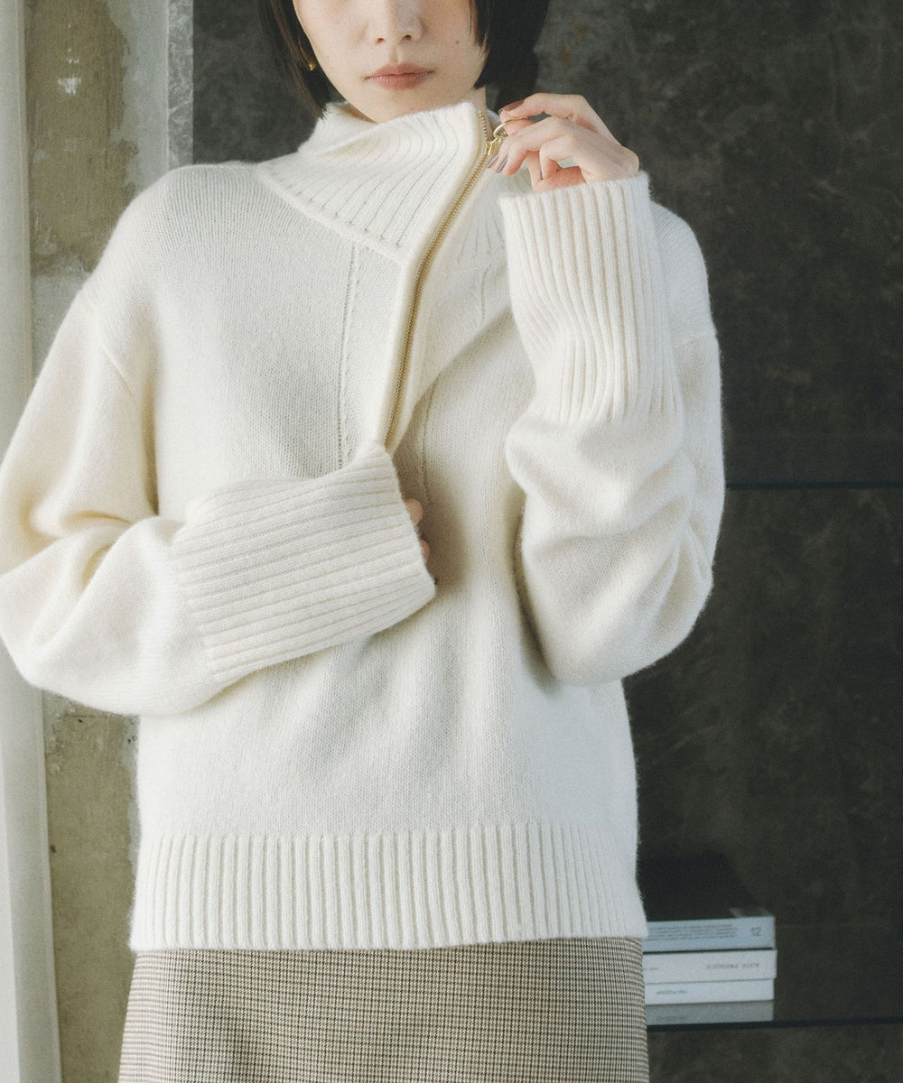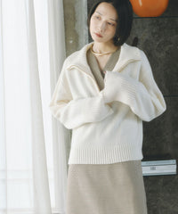 ややボクシーなシルエットで、スカートでもパンツでも着回し感抜群のニットです。上までジップを締めてハイネックにすると、真冬でもマフラー要らずの暖かさ。スポーティなデザインなので、ボトムにはあえてツヤ感のあるサテンのロングスカートを合わせるのも今年らしくおすすめです!